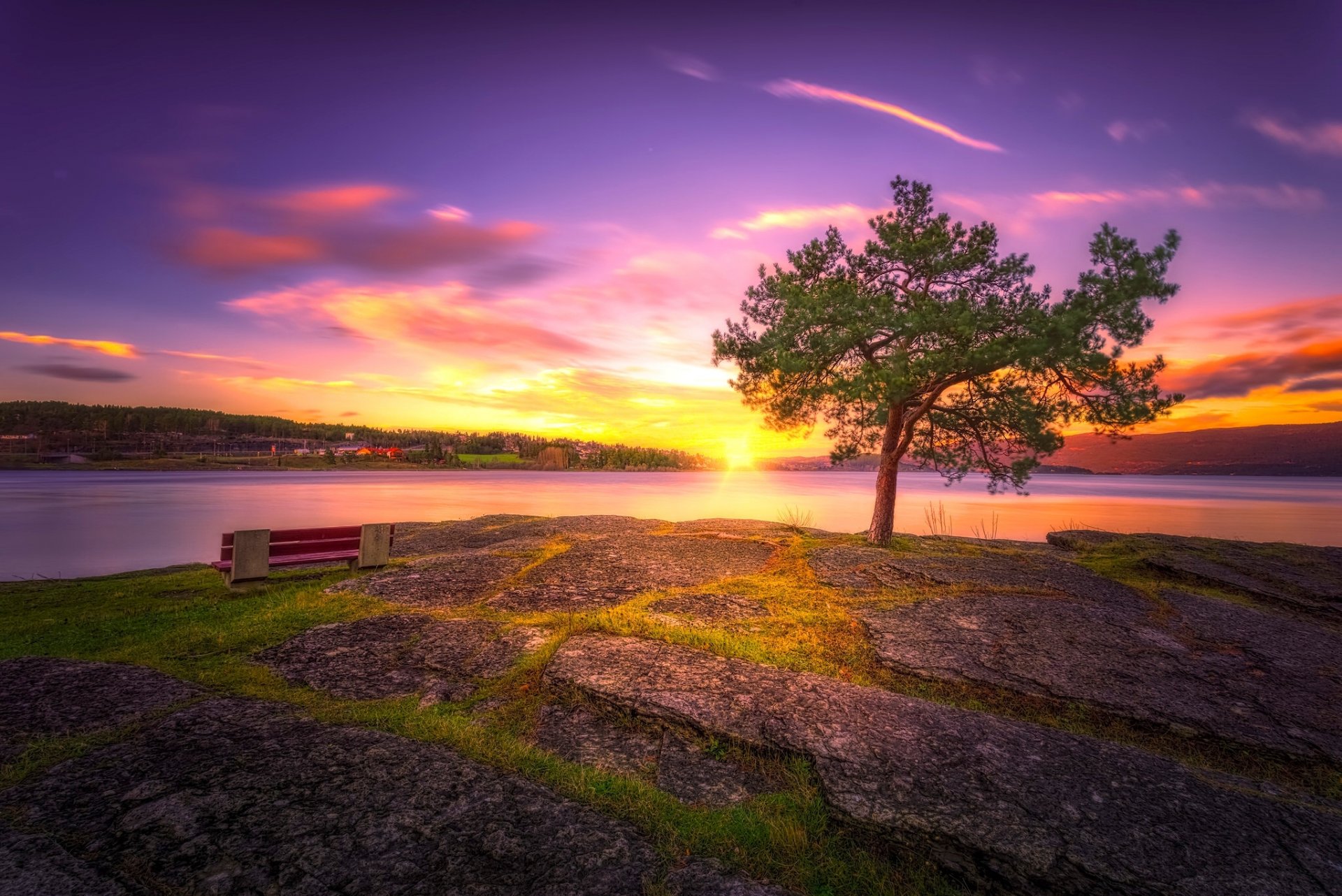Hermosa puesta de sol con vistas al río - fondos de Escritorio