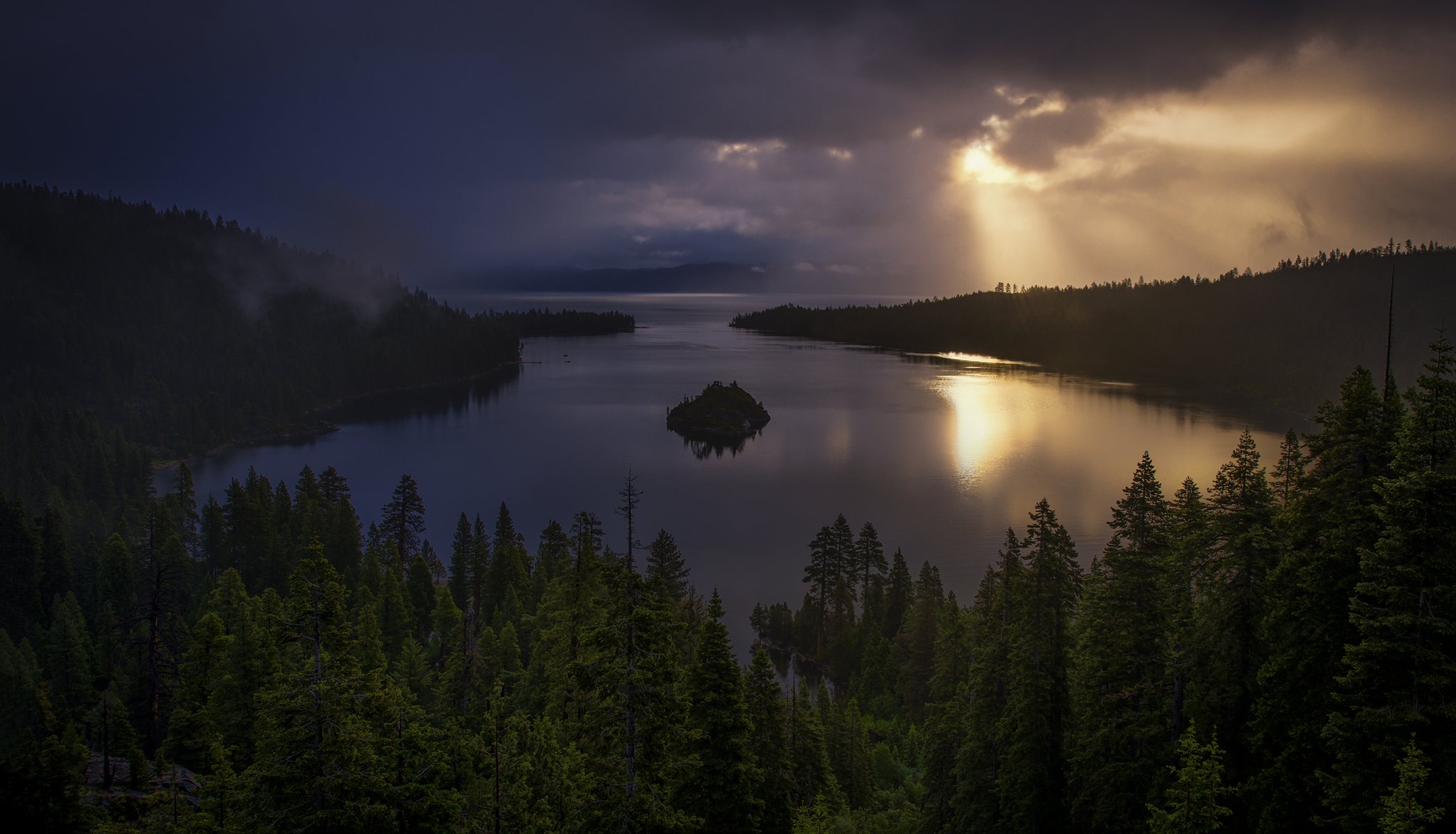 Etiquetas:montañas, bosque, bahía, isla, nubes, rayos del sol, salida del sol