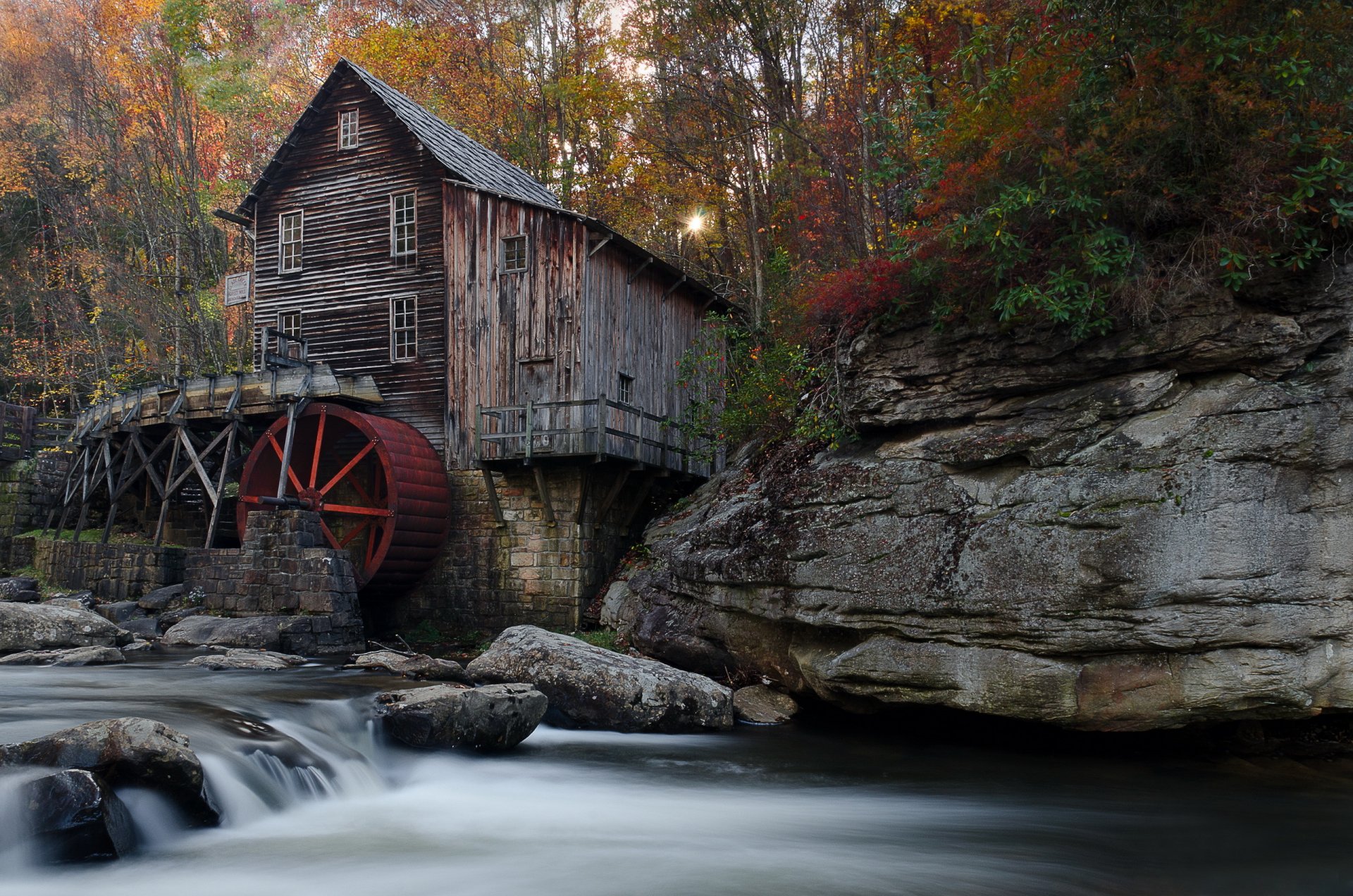 Molino junto al río en medio del bosque - fondos de Escritorio