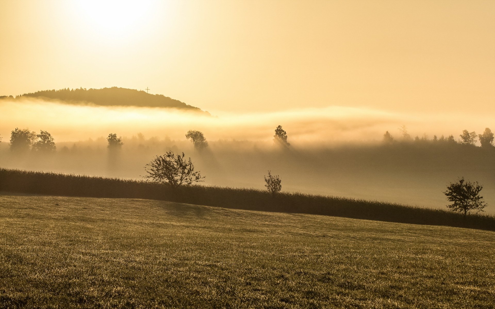 Niebla de la mañana en las montañas y en el campo - fondos de Escritorio