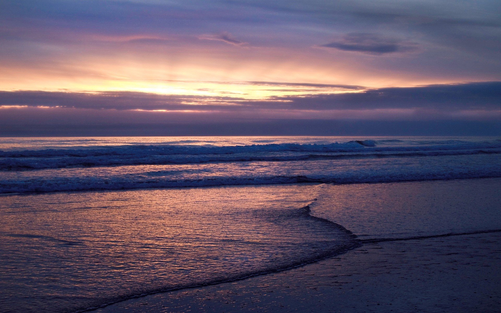 Olas del mar en medio de la puesta de sol y las nubes - fondos de Escritorio