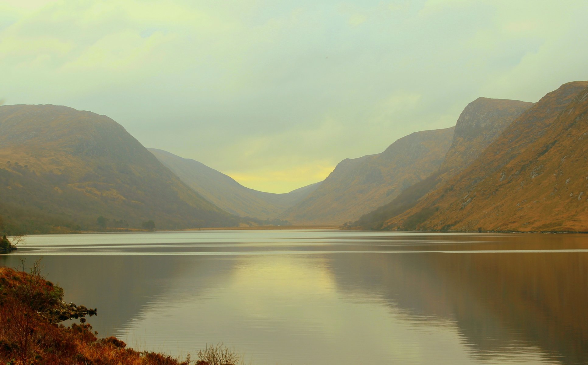 Paisaje de la mañana con lago y montañas - fondos de Escritorio