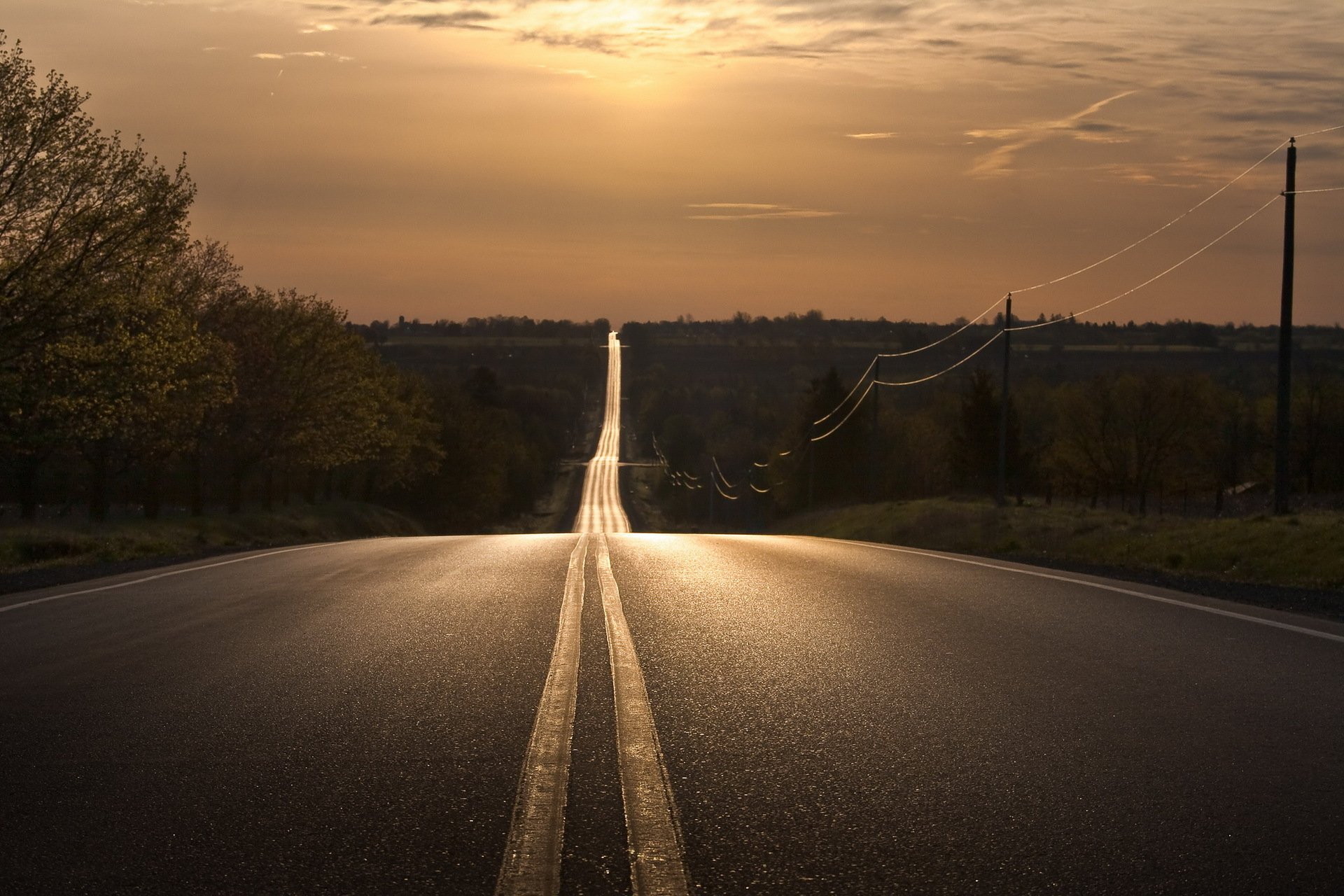 Paisaje de puesta de sol nocturna en la carretera - fondos de Escritorio