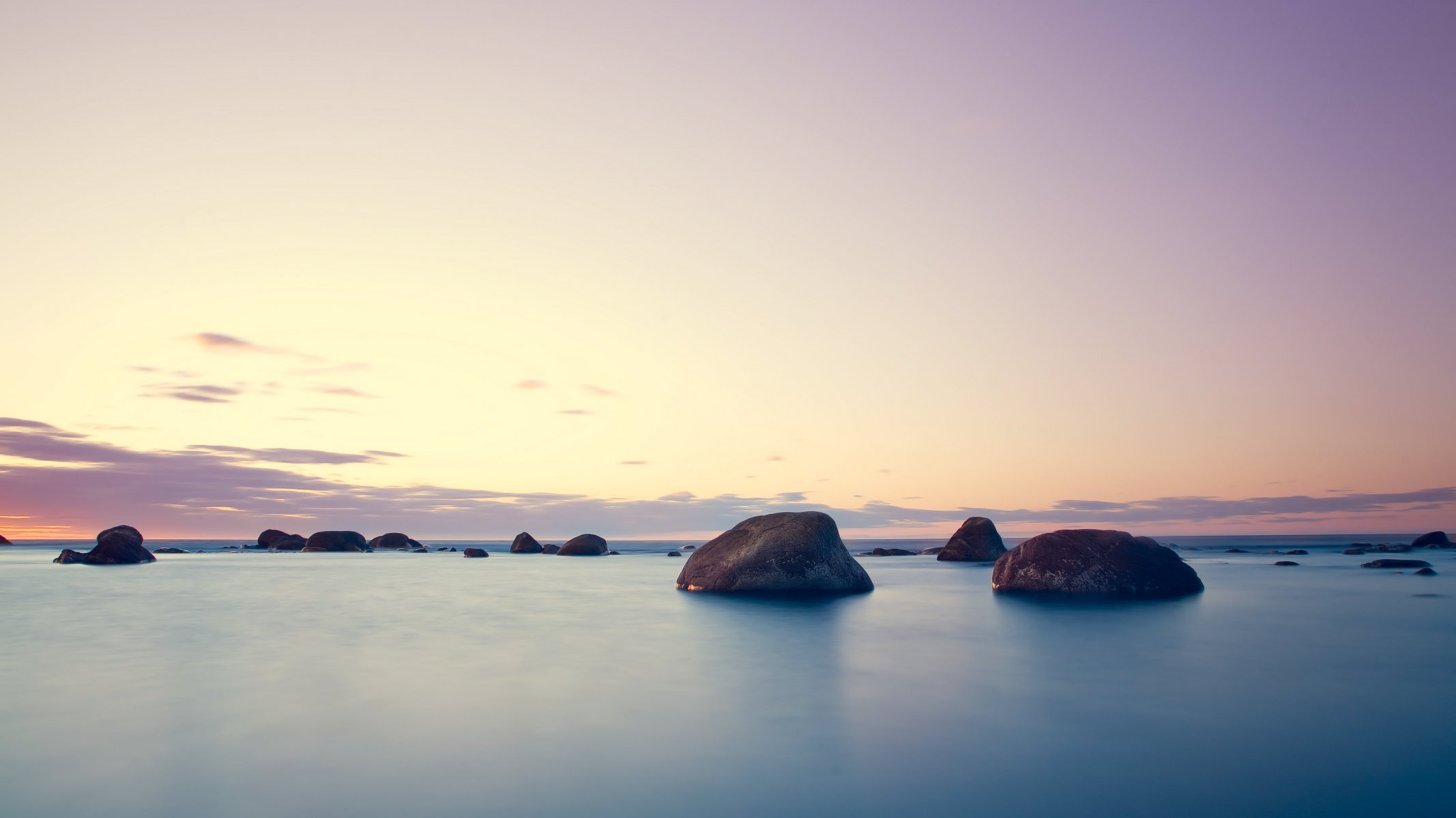 Puesta de sol en medio del mar y las piedras - fondos de Escritorio