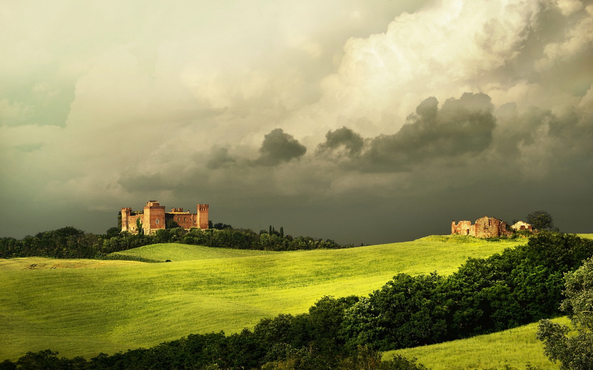 Toscana en nubes y hierba verde - fondos de Escritorio