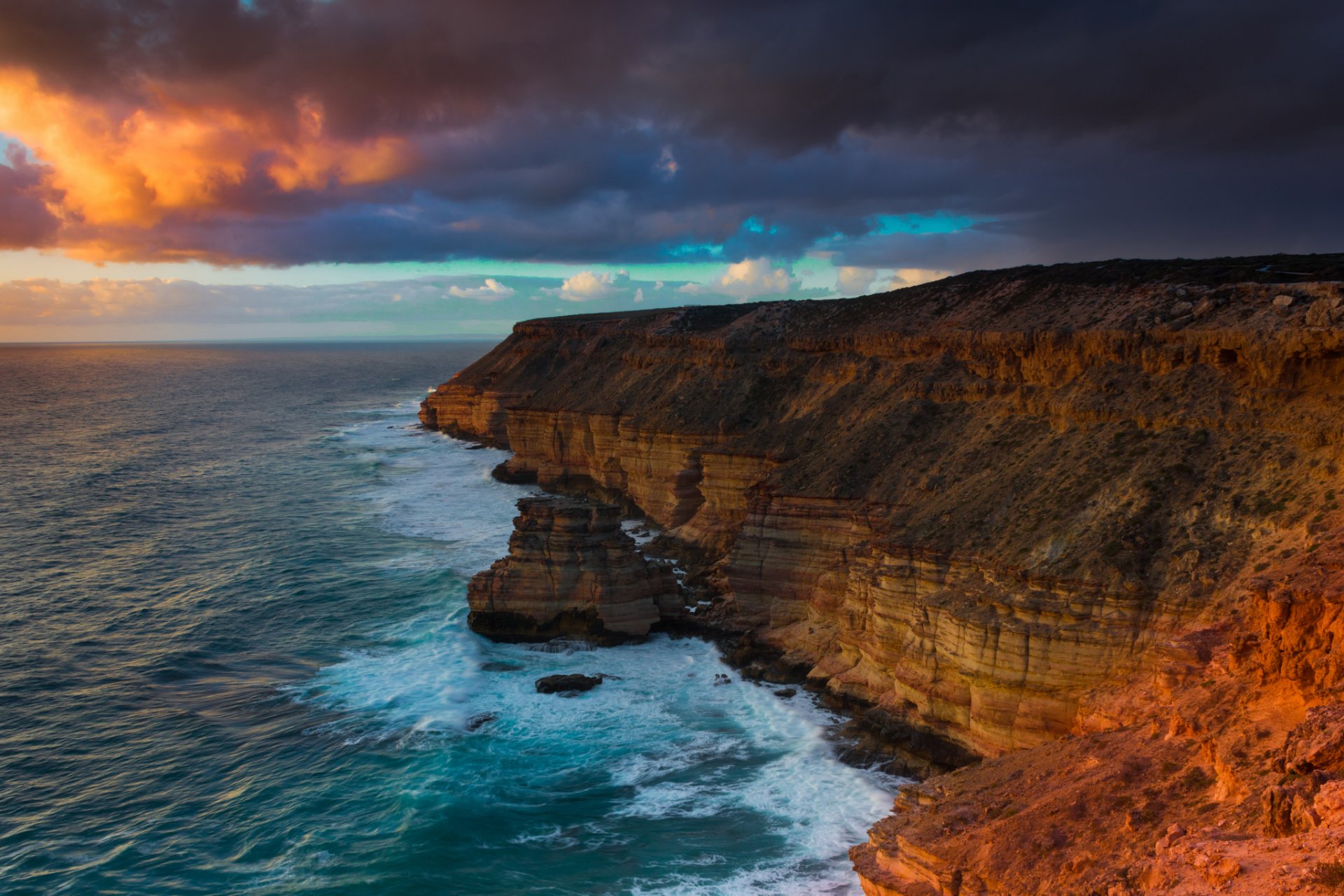 Acantilado en el océano al amanecer - fondos de pantalla