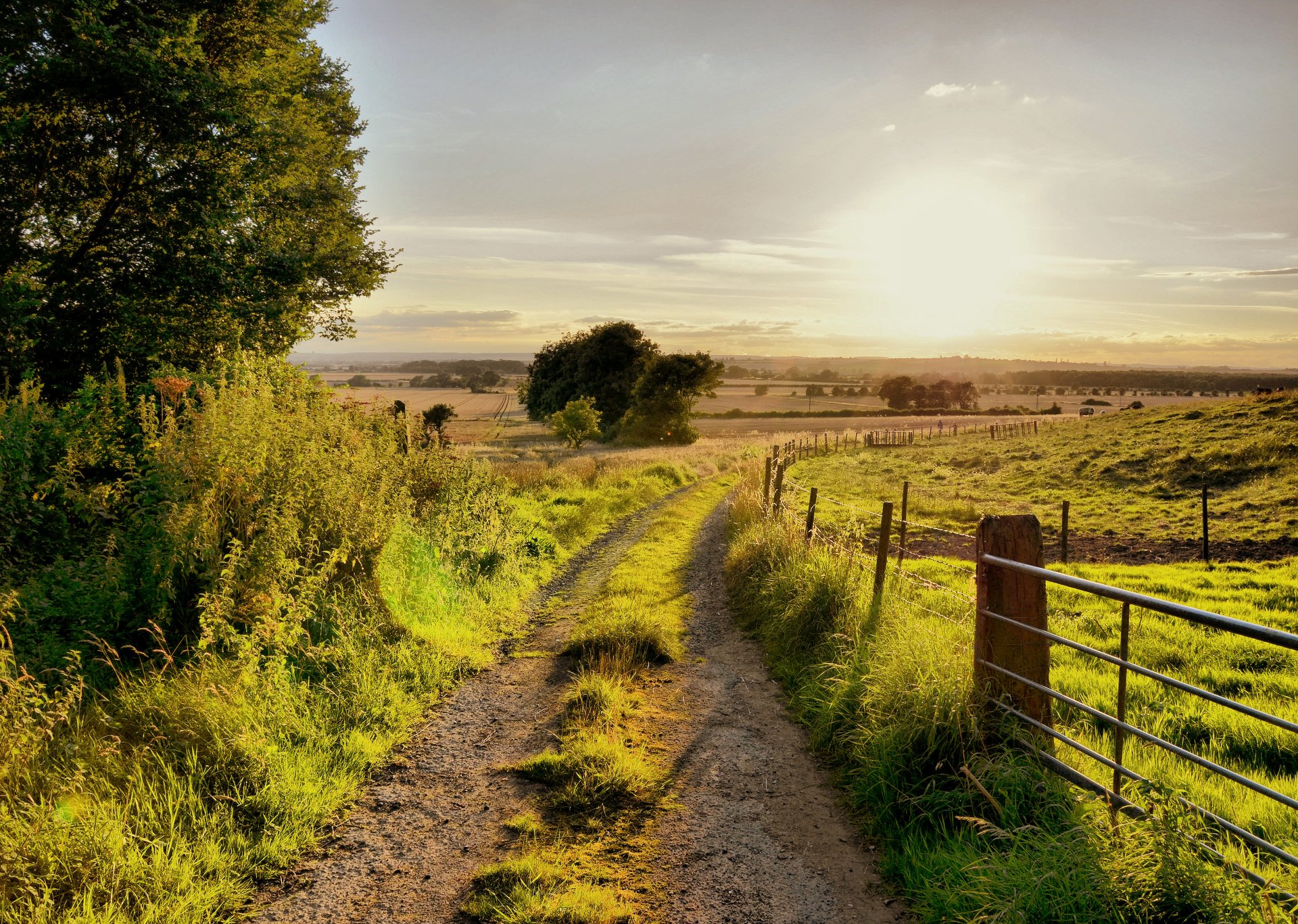 Camino al Prado verde a lo largo de la cerca - fondos de pantalla