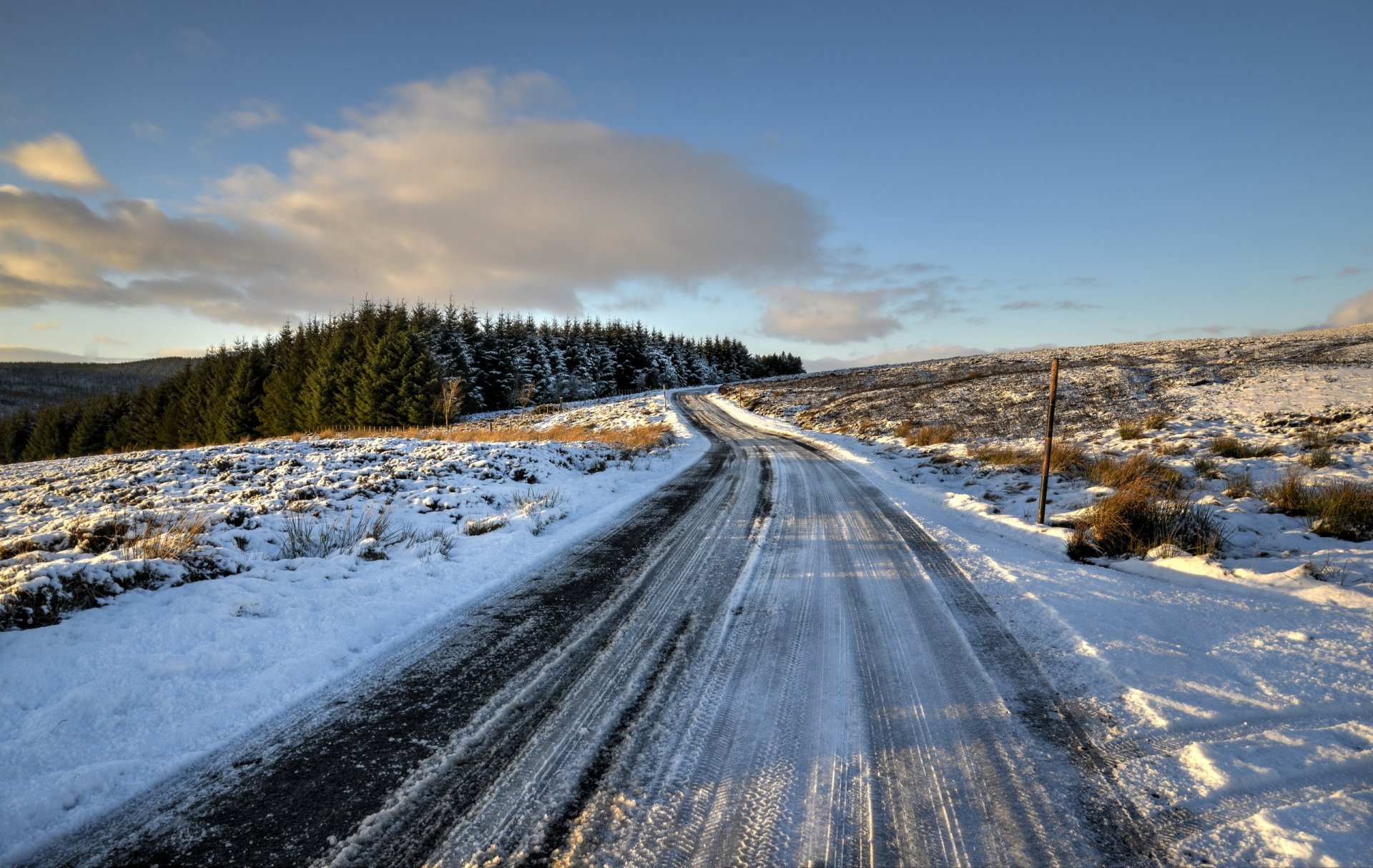 Camino de invierno a través del valle nevado - fondos de pantalla