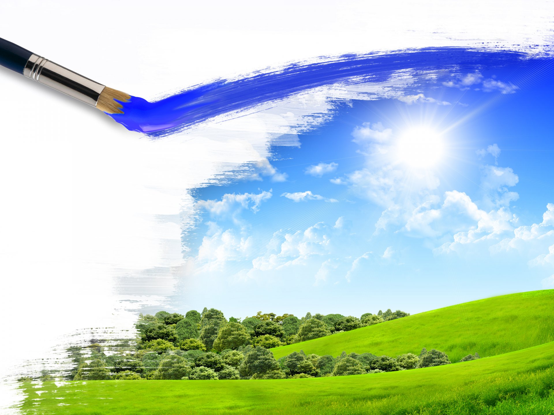 pincel pintura paisaje colinas prado vegetación verano cielo nubes