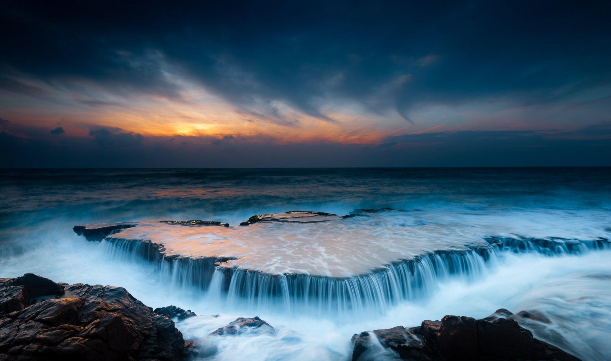 Costa rocosa y cascadas al amanecer - fondos de pantalla