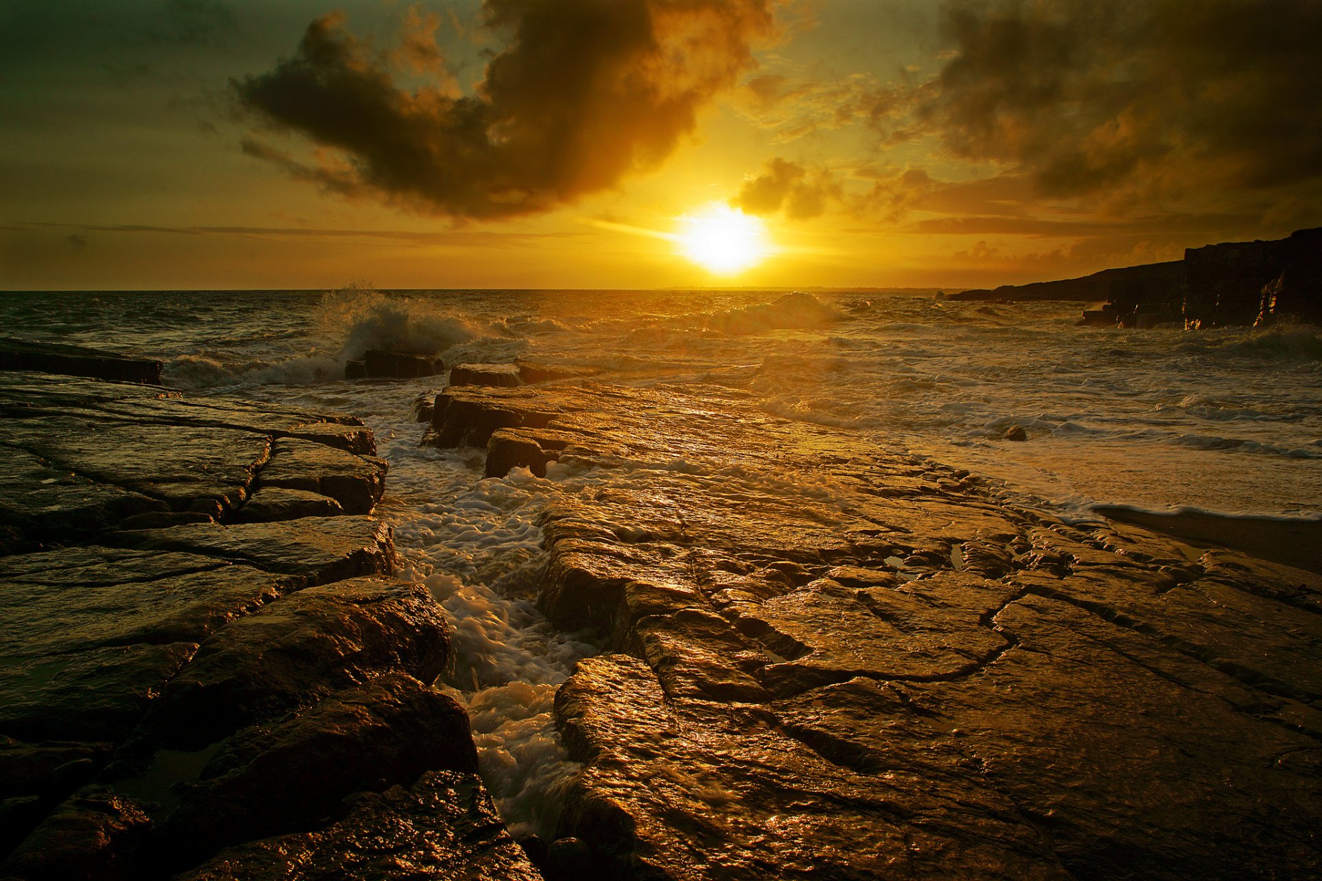 El cielo de la puesta de sol en el fondo de la orilla del mar - fondos de pantalla