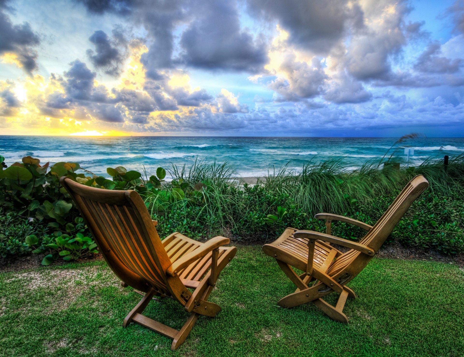 naturaleza sillas mar amanecer