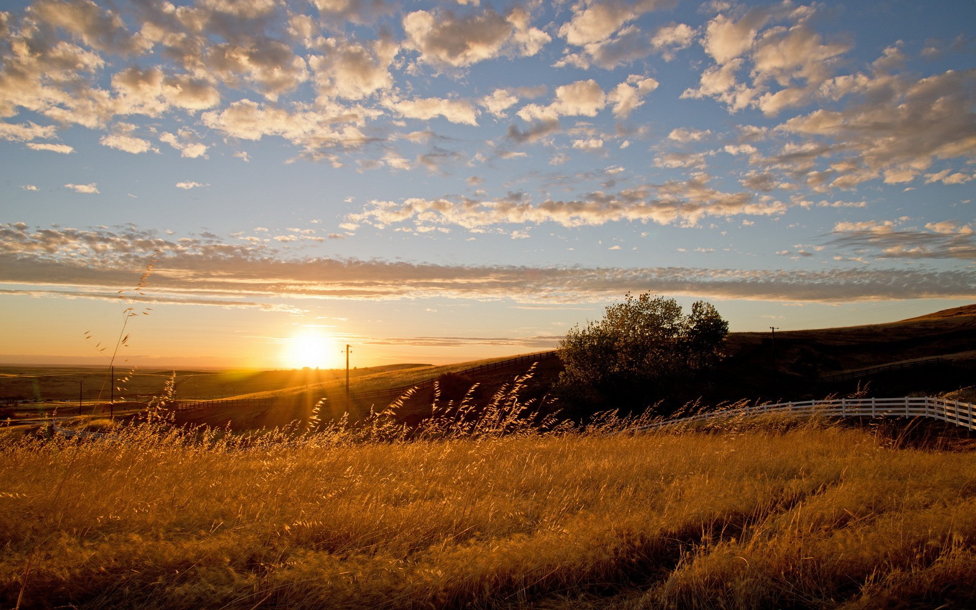 Hermosa puesta de sol en un campo con una cerca - fondos de pantalla