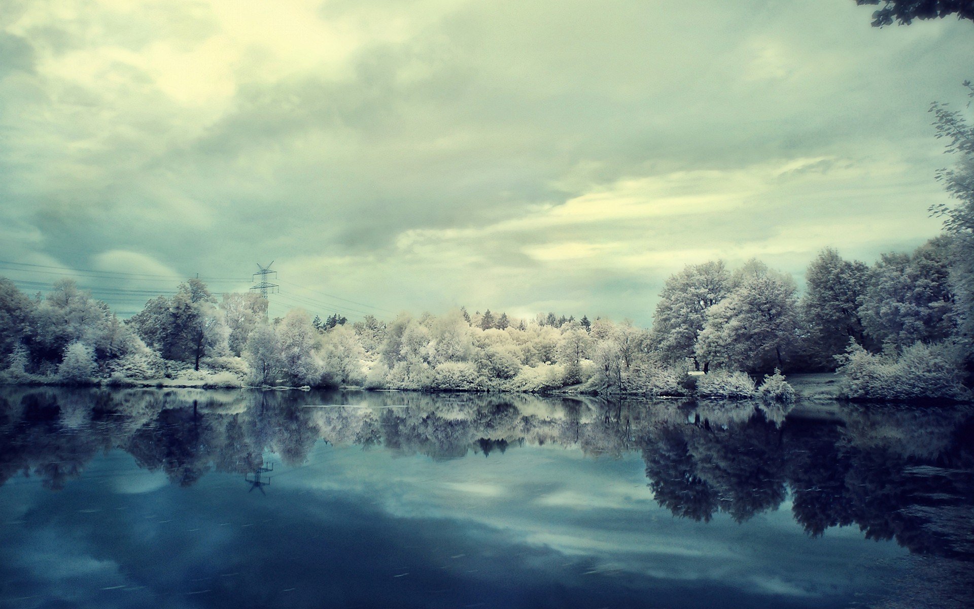 Etiquetas:invierno, nieve, escarcha, lago, árboles, nubes, nublado
