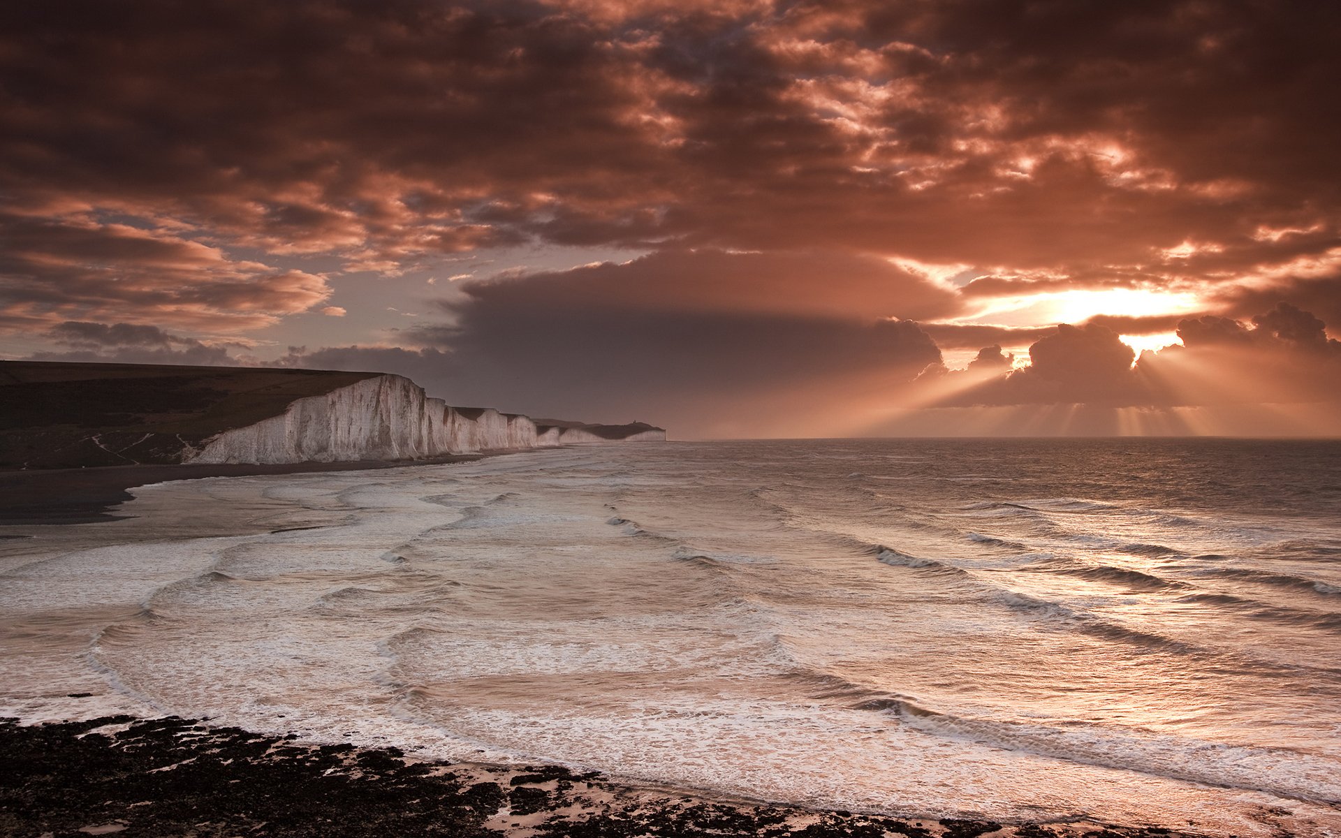 La costa ondulante en los rayos de la luz del cielo - fondos de pantalla