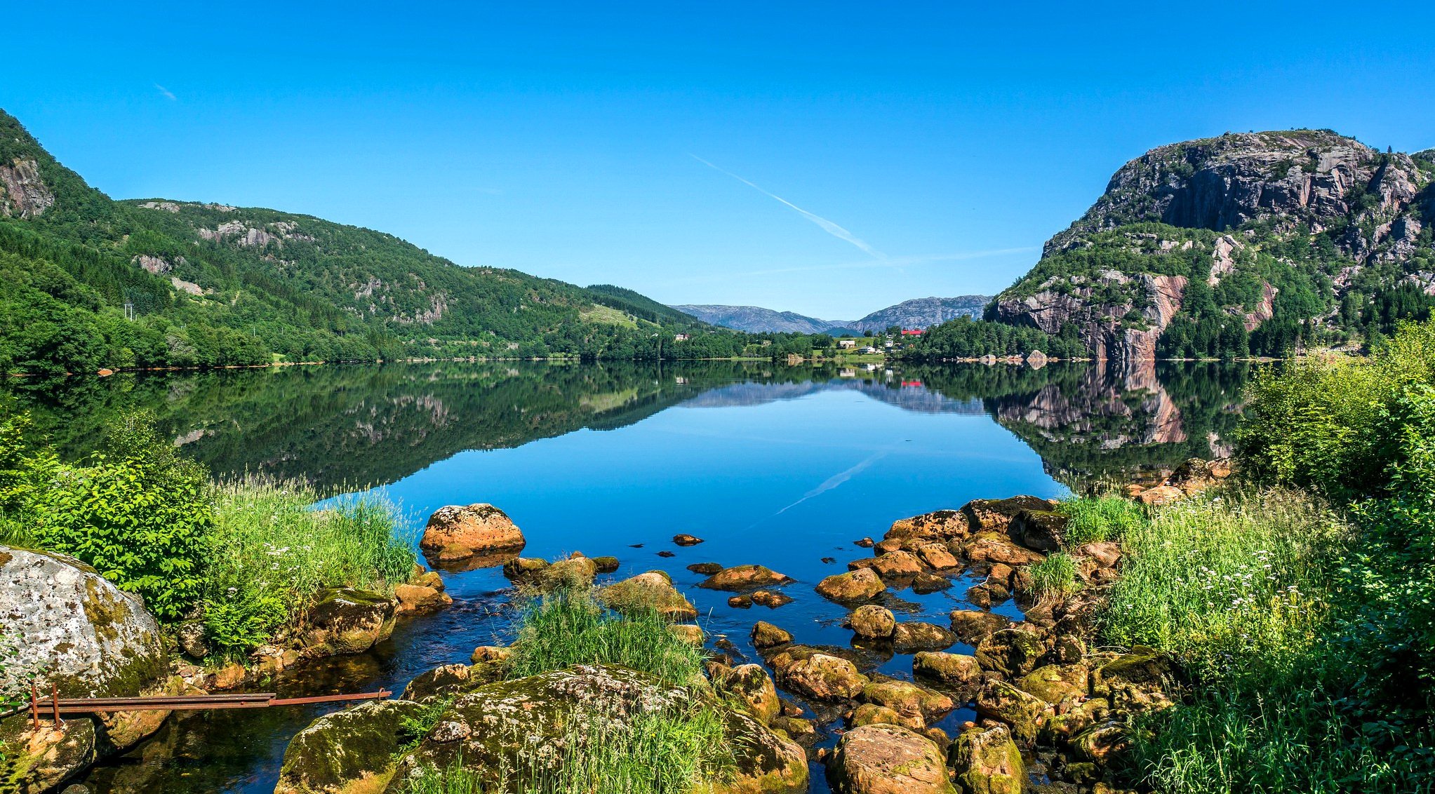 Etiquetas:cielo, montañas, lago, piedras, casa