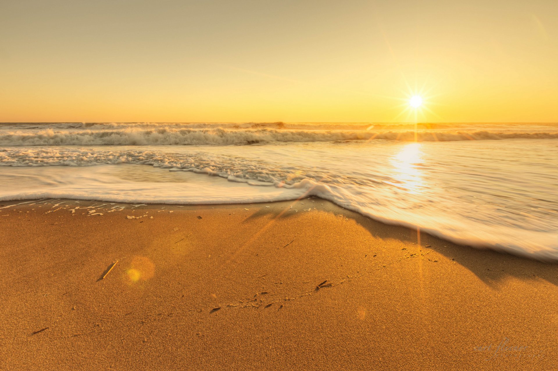 Playa desierta al atardecer