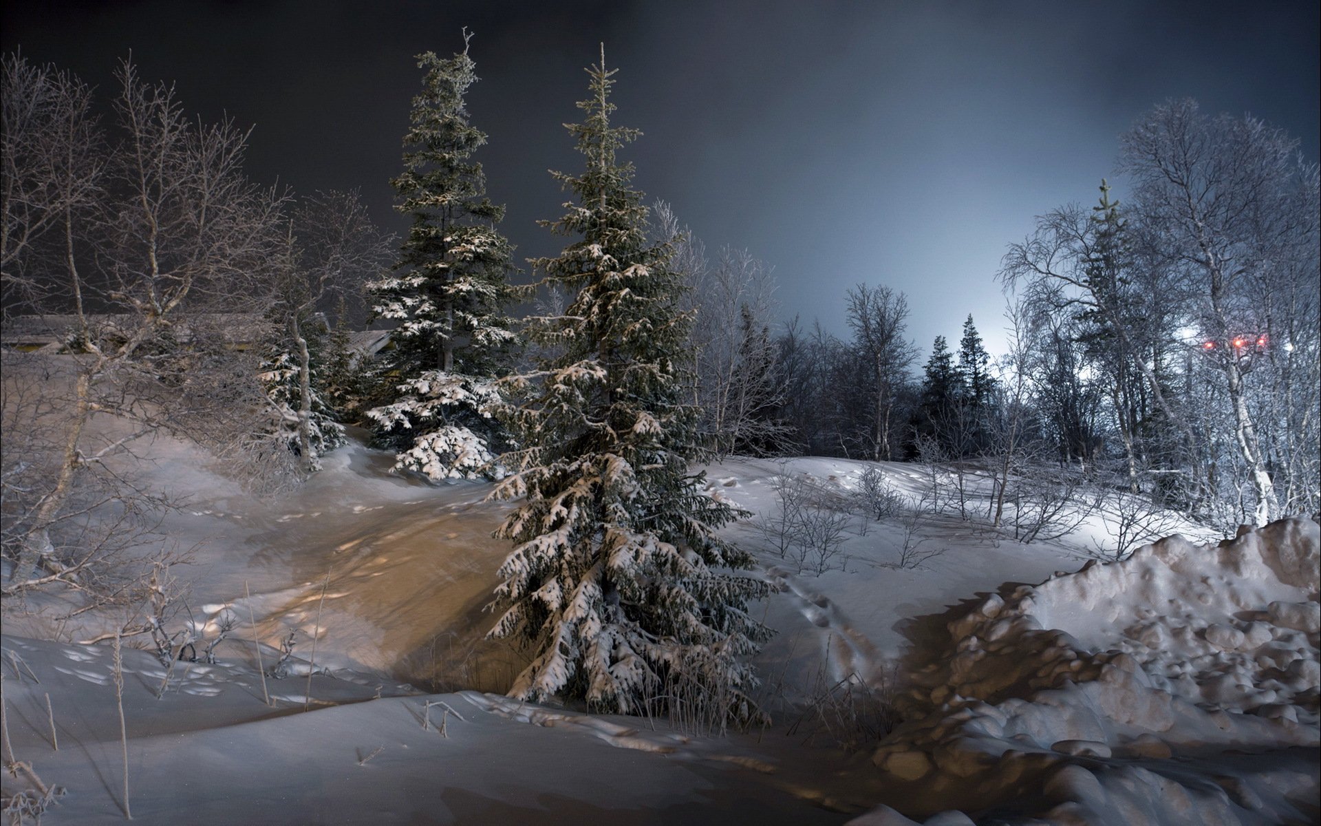 Paisaje de bosque de invierno por la noche - fondos de pantalla