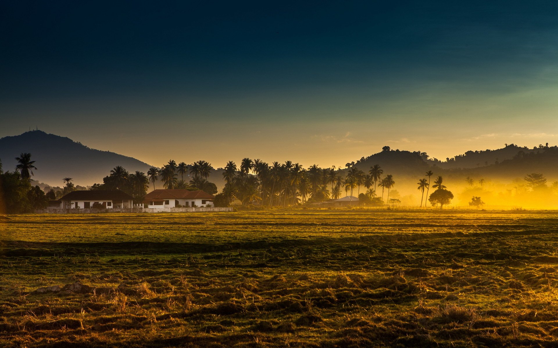 Paisaje de campo en la niebla de la mañana - fondos de pantalla
