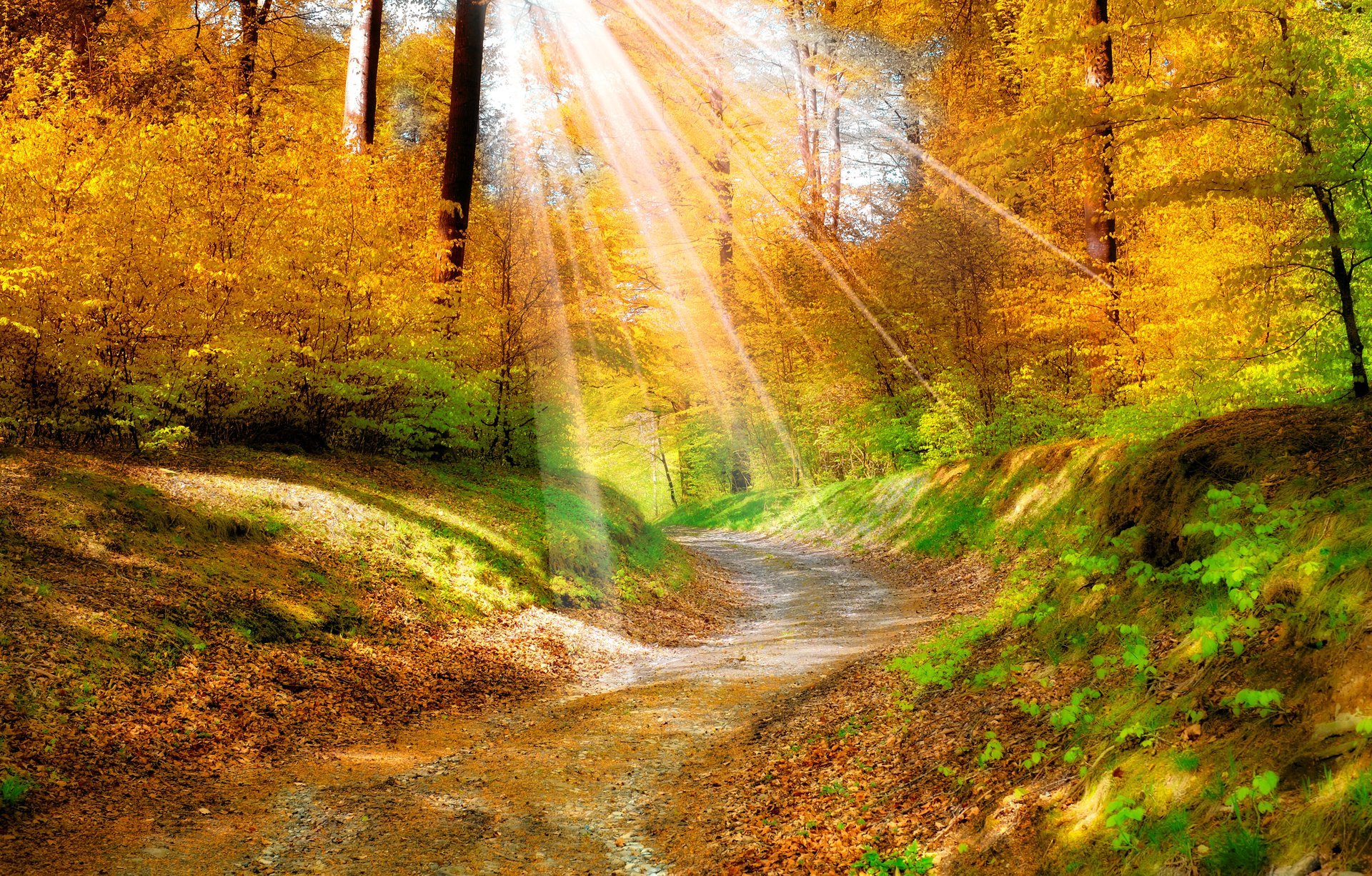 Rayos de sol en el bosque de otoño - fondos de pantalla