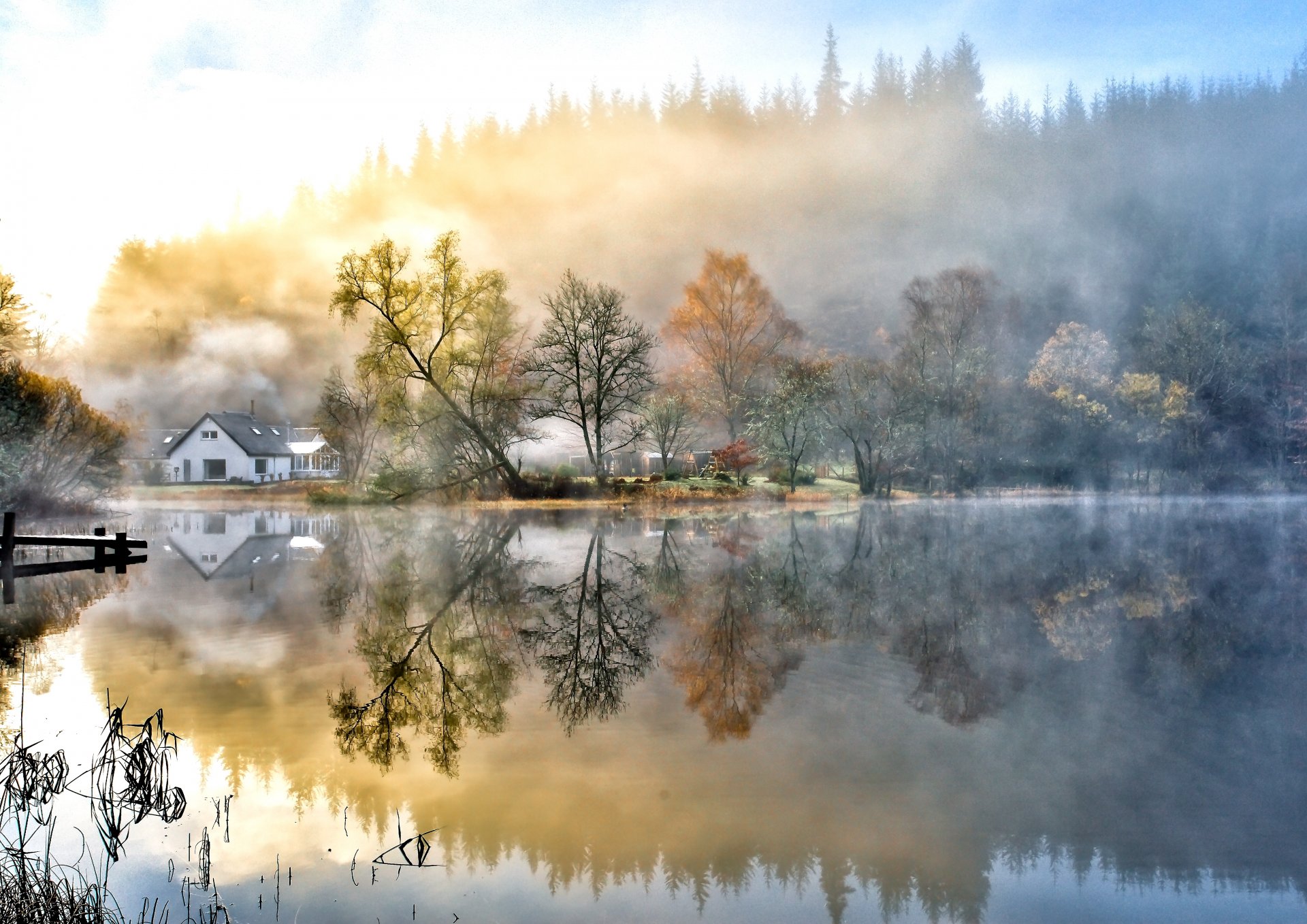 Árboles de otoño junto al lago y la casa blanca - fondos de pantalla