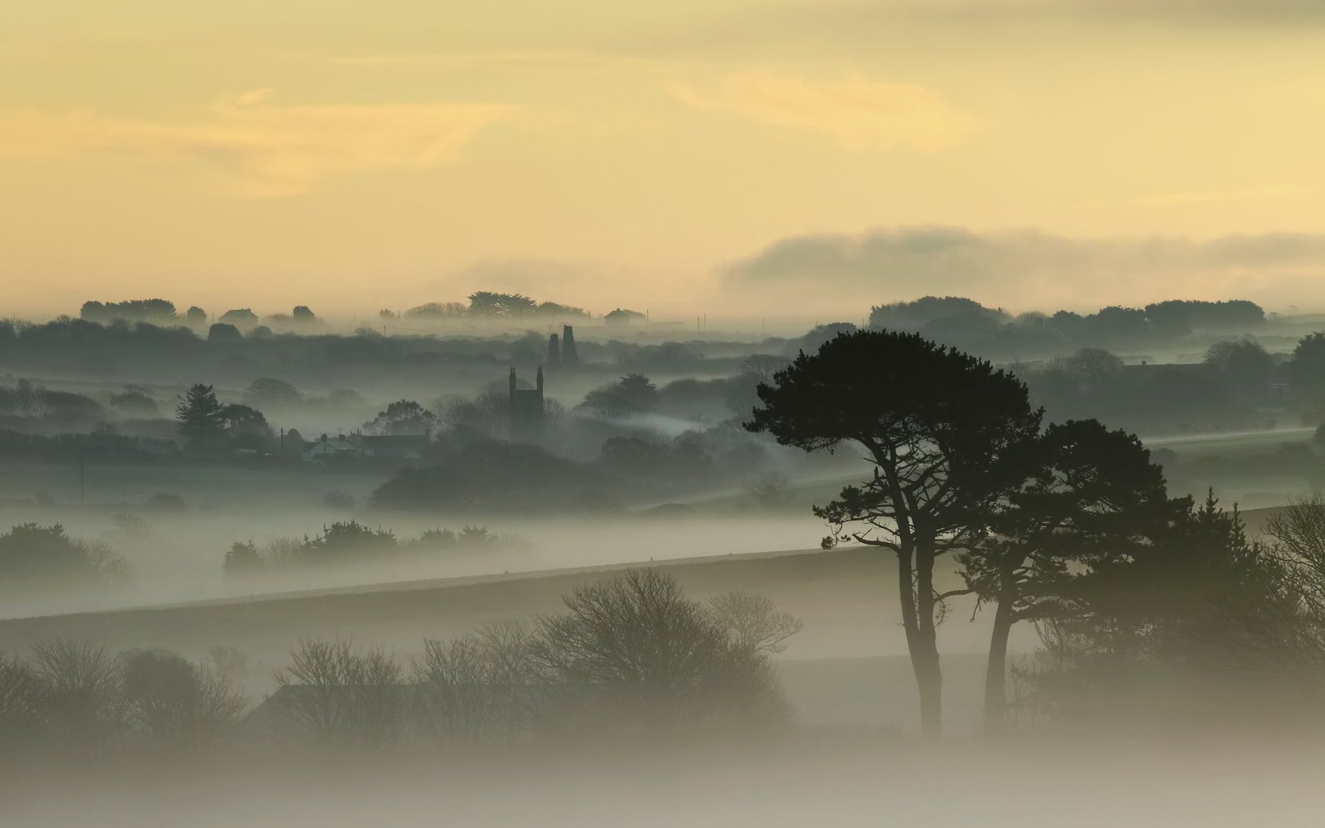 Etiquetas:amanecer, niebla, árboles, casas, cielo, cornualles, inglaterra