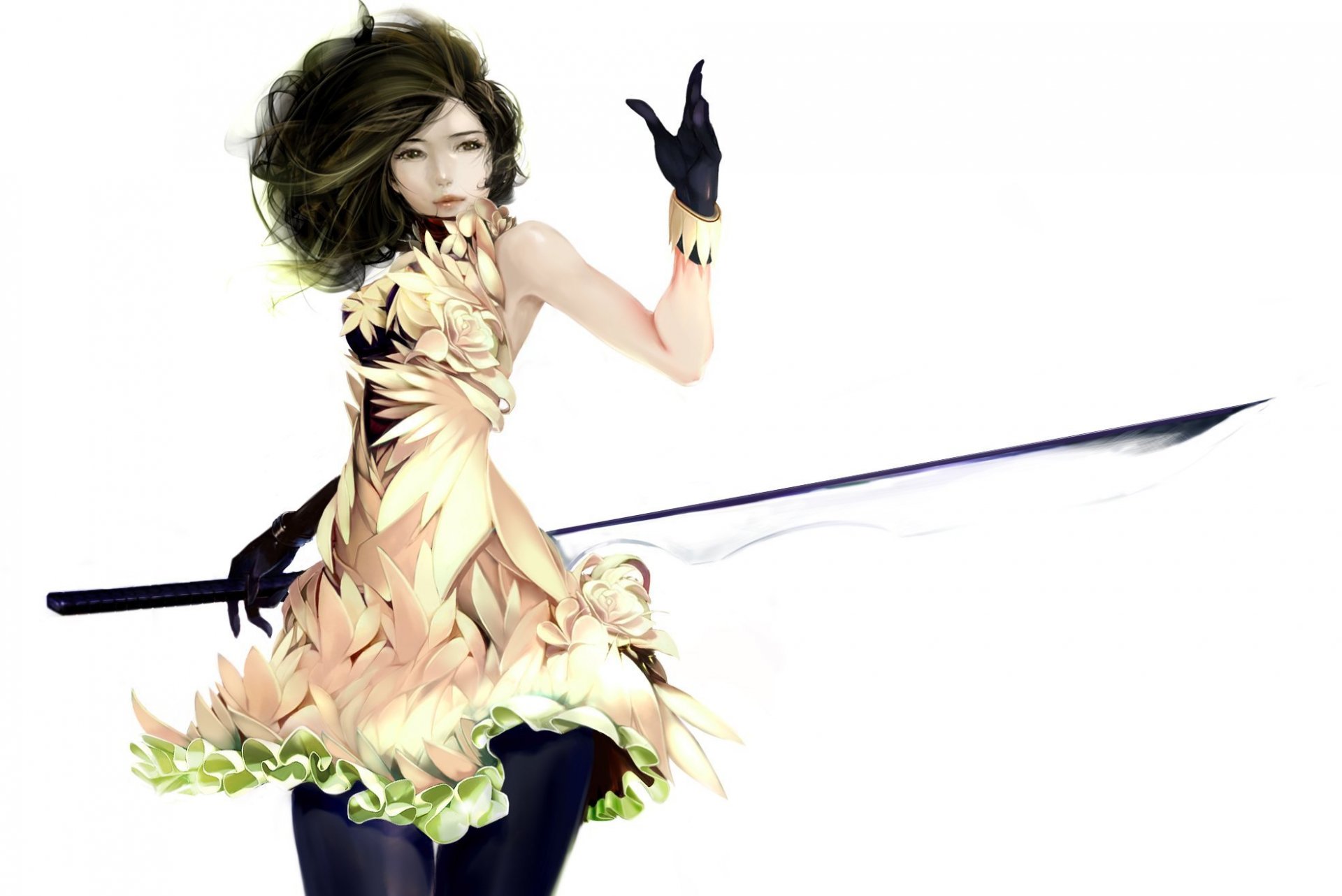 Etiquetas:arte, chica, mirada. pelo, vestido, guantes, fondo blanco