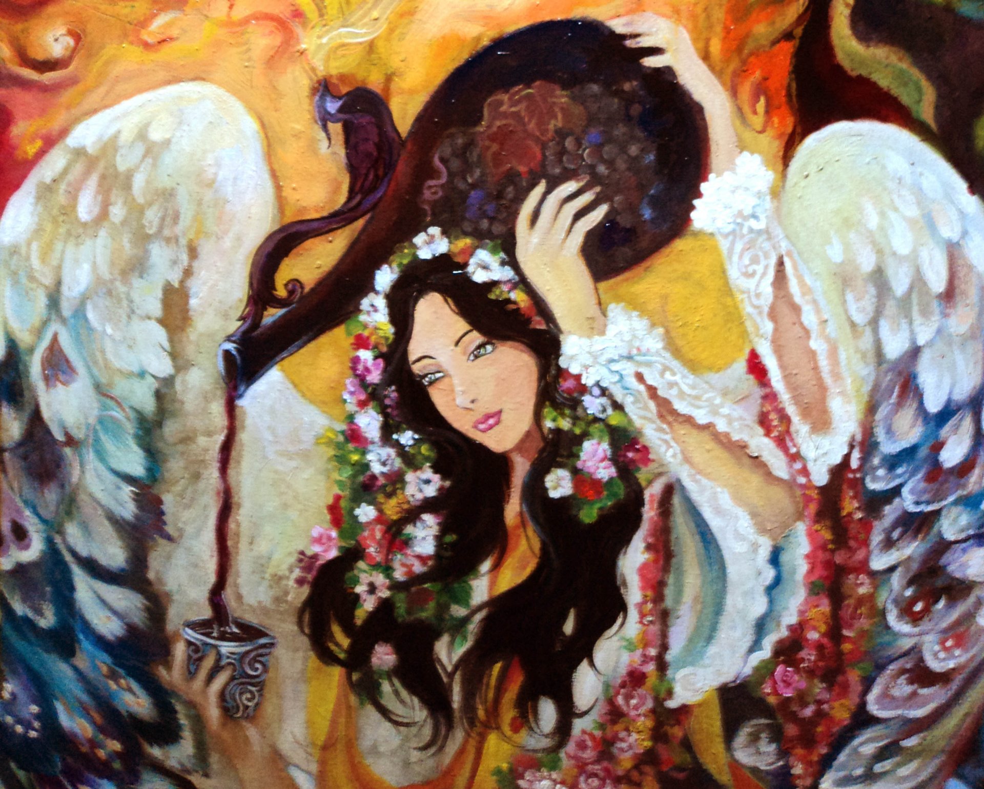 Etiquetas:pintura, chica, mirada, cara, pelo, manos, flores, alas, ángel