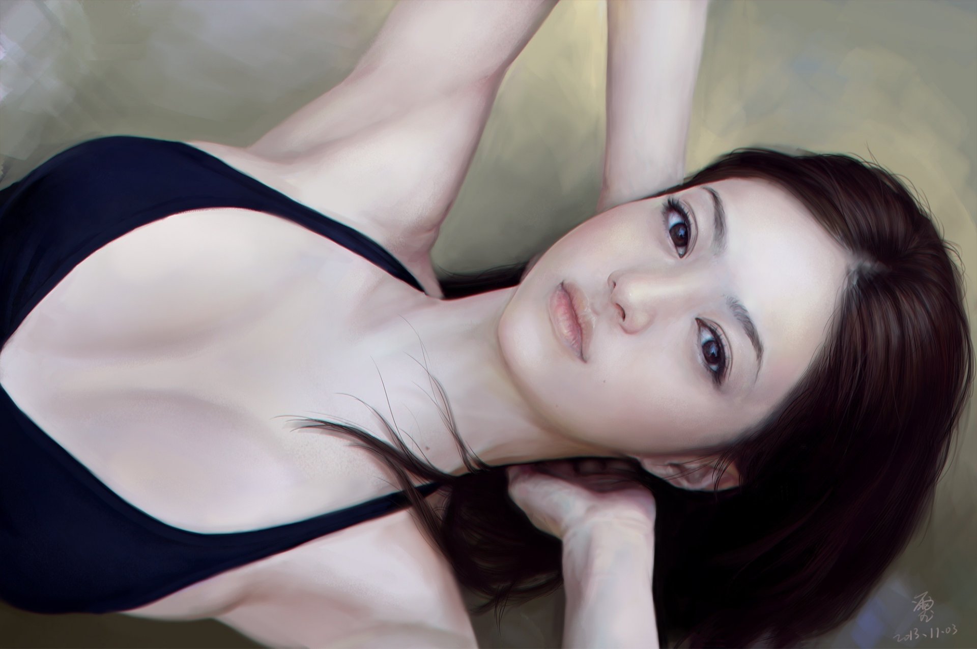 Etiquetas:pintura, arte, chica, mentira, manos, cuello, asiático, cara, mirada, ojos