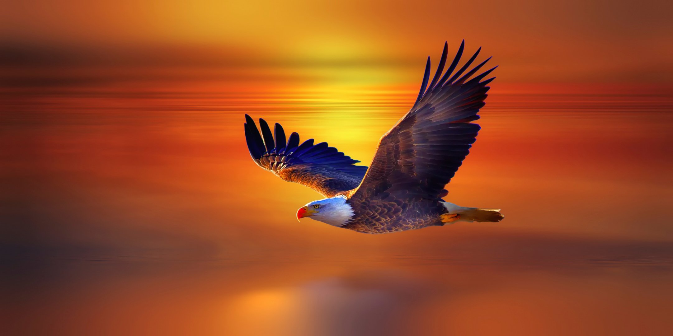 El águila vuela en medio de la puesta de sol - fondos de pantalla