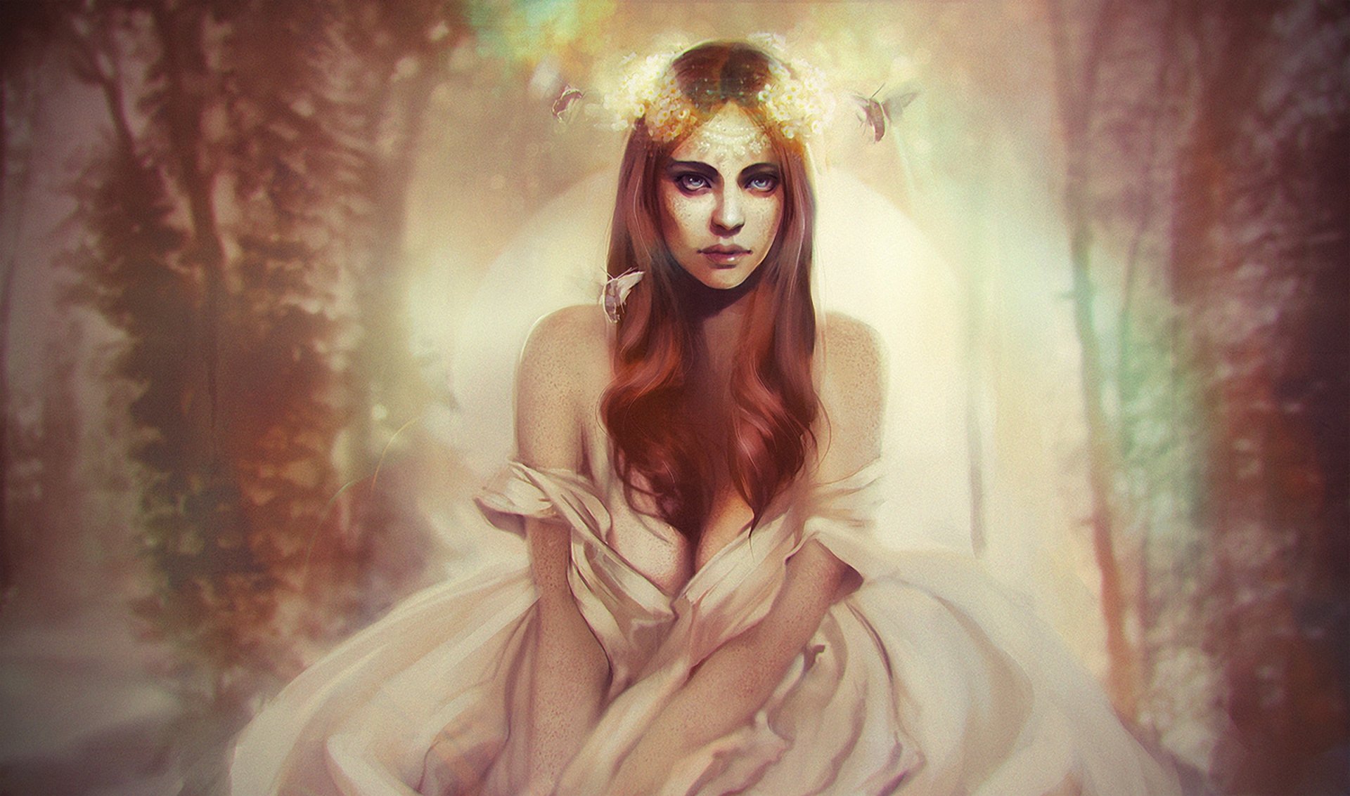 Etiquetas:chica, vestido, polillas, bosque, corona, mirada