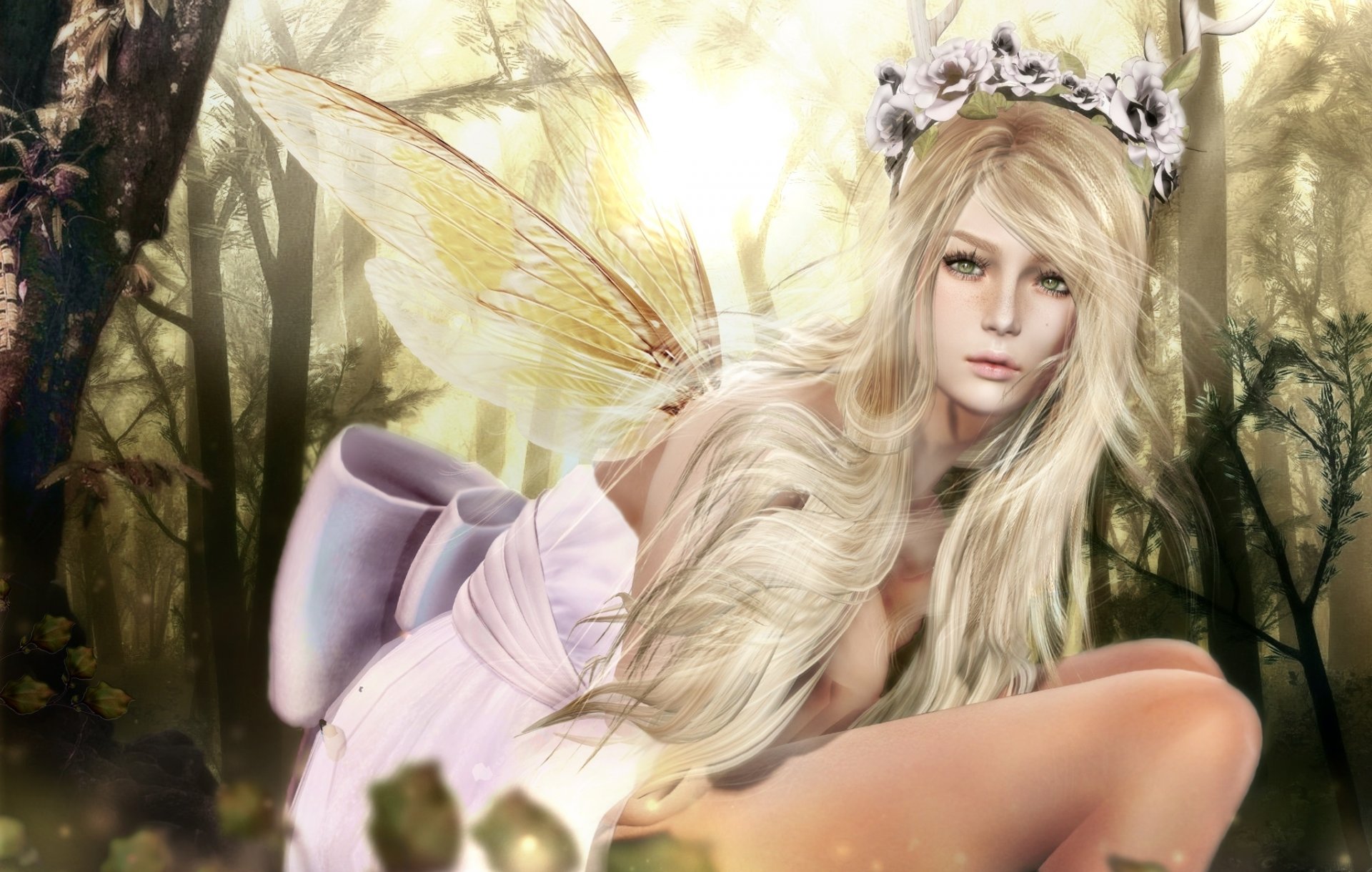 Bosque de fantasía-chica con corona