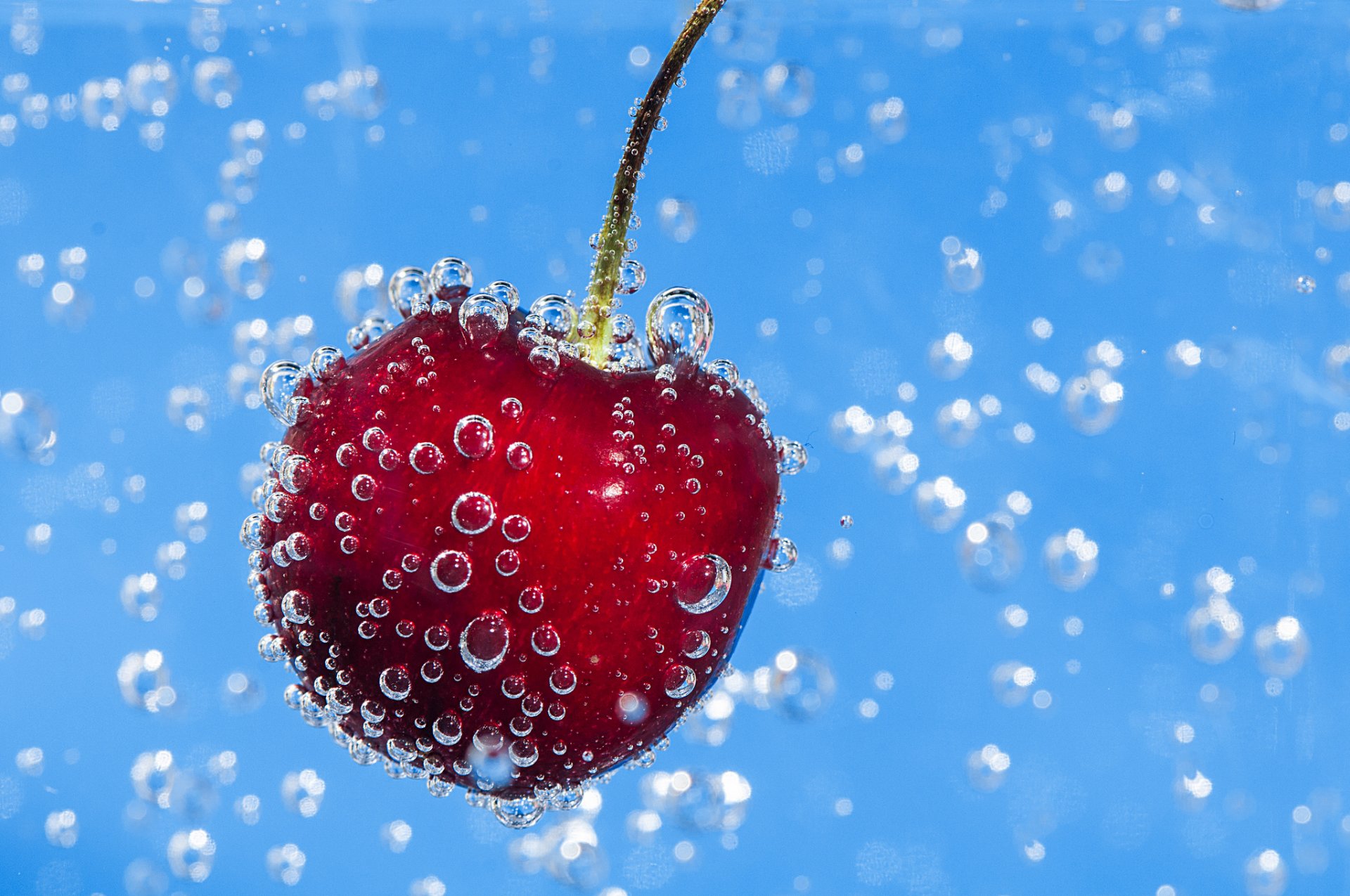 Las burbujas son incoloras en el fondo de las hojas verdes en los rayos del sol