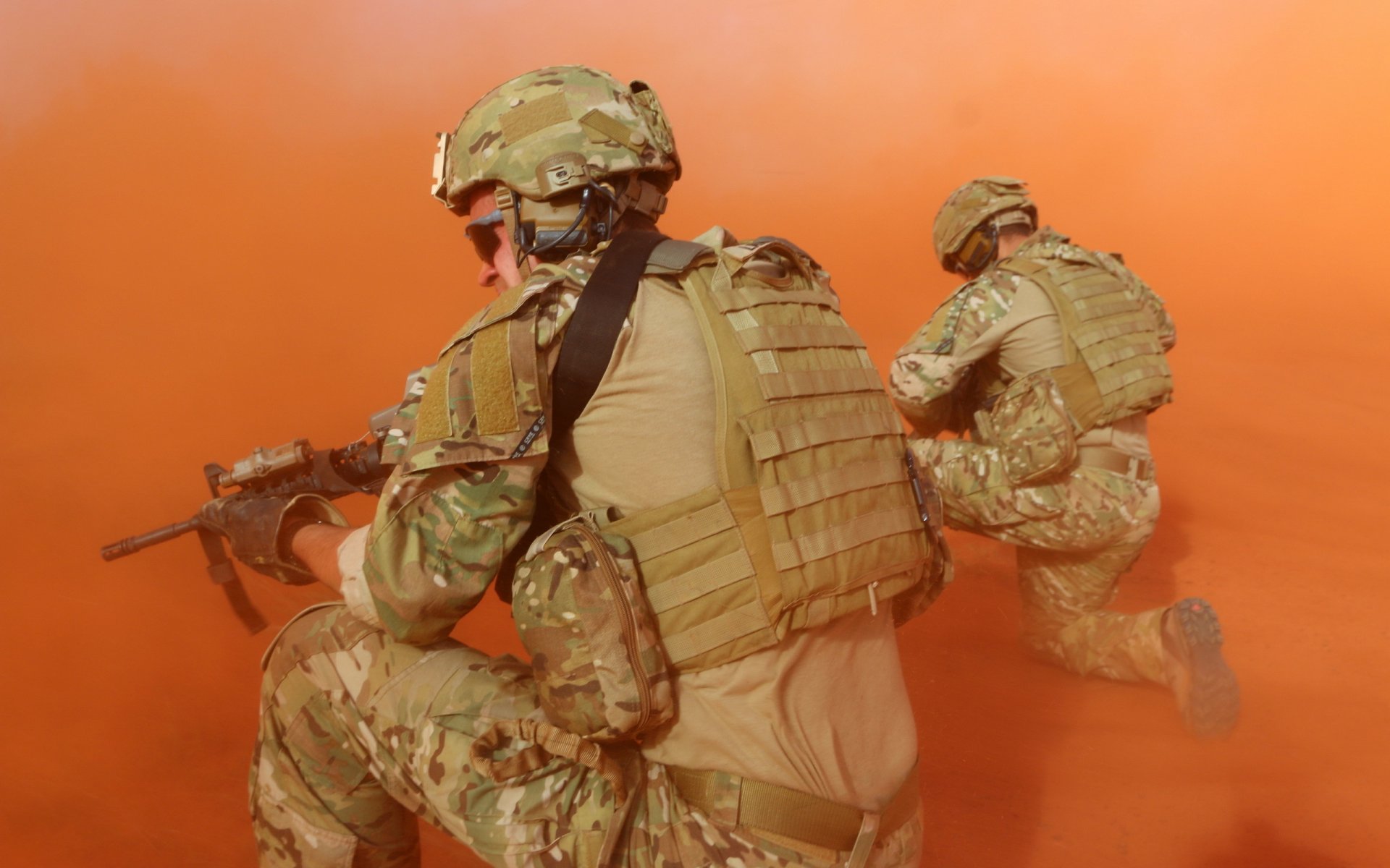 Soldados cegados en una corriente de polvo