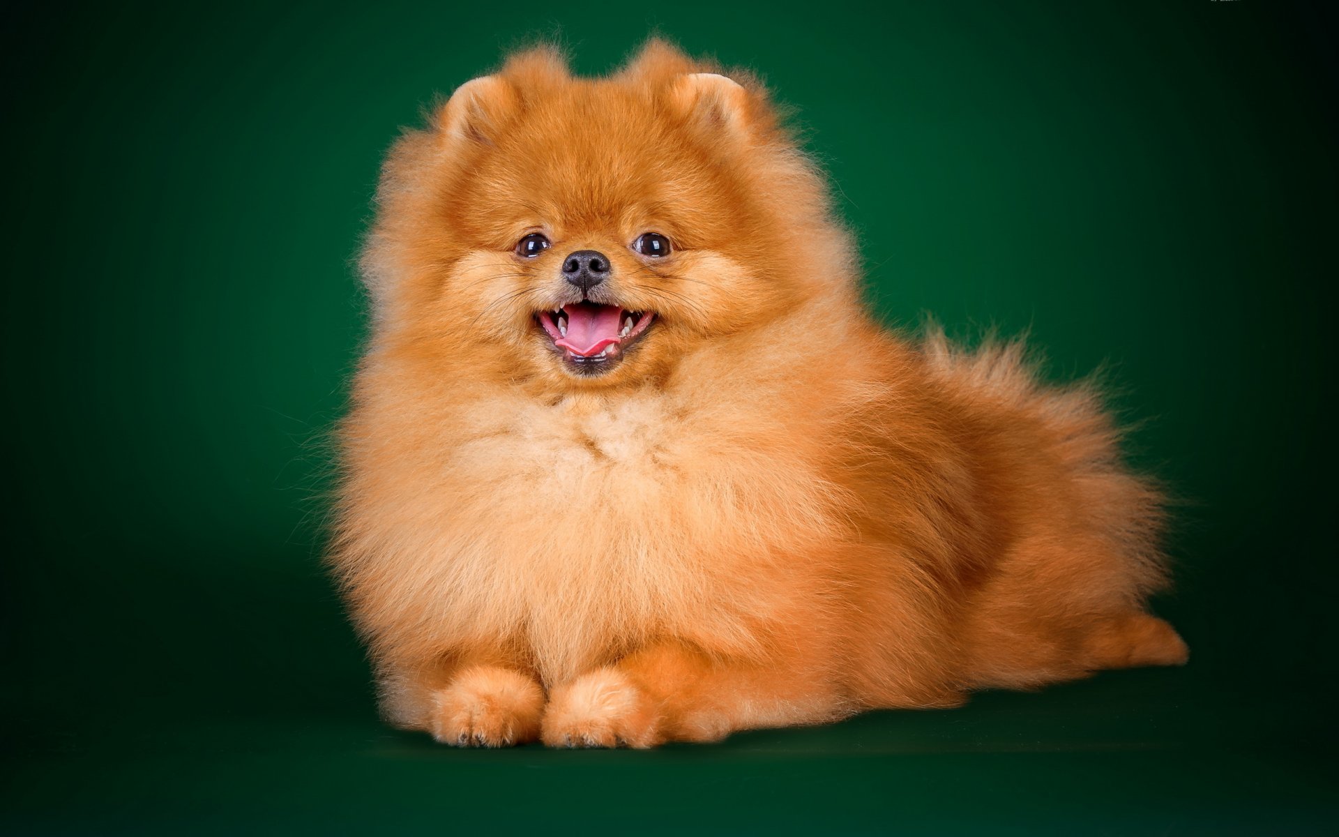 Mimimishnaya pelirroja perrito sobre un fondo verdeMimimishnaya pelirroja perrito sobre un fondo verde