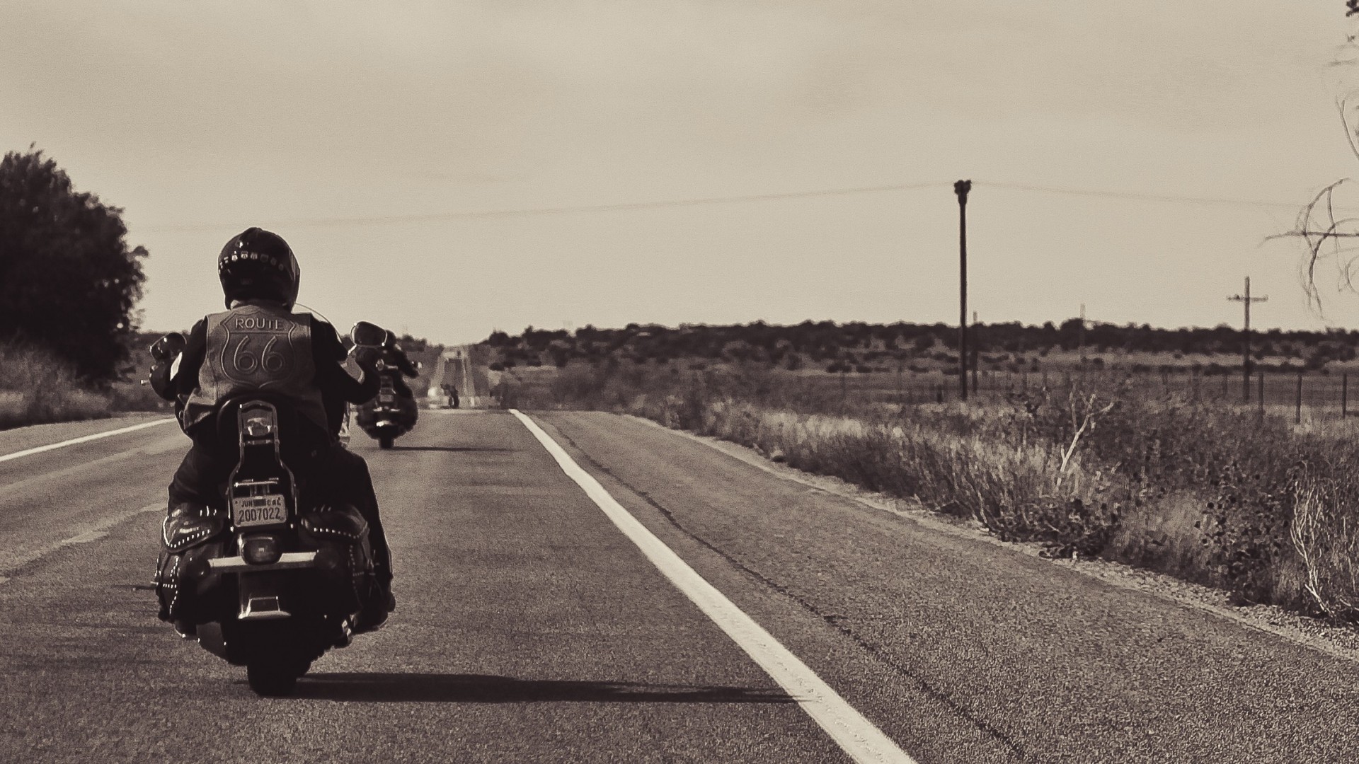 Motociclista monta una bicicleta en la distancia en una foto vintageMotociclista monta una bicicleta en la distancia en una foto Vintage