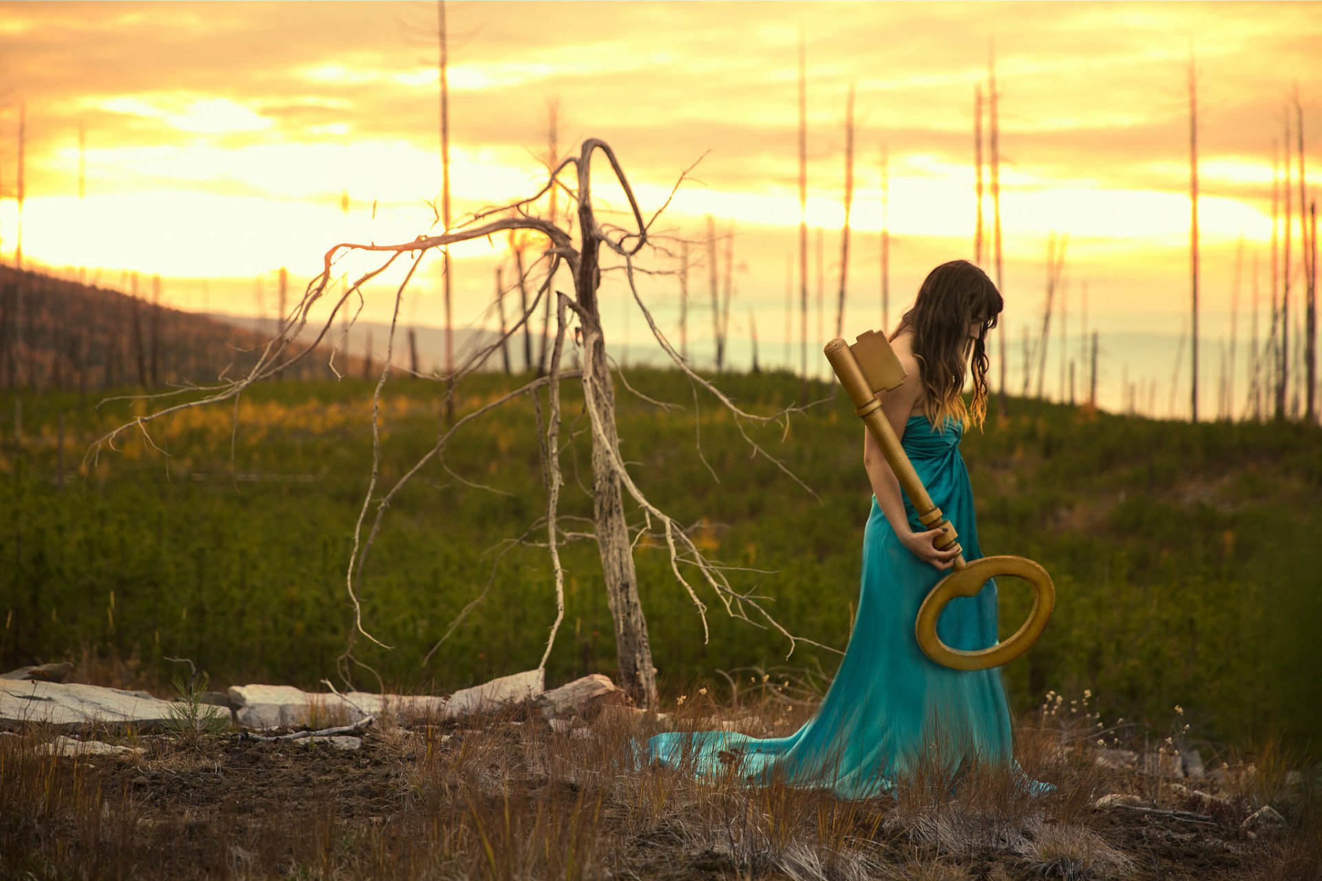 Chica con una gran motocicleta en otro planeta con rocas en el fondoChica con una gran motocicleta en otro planeta con rocas en el fondo