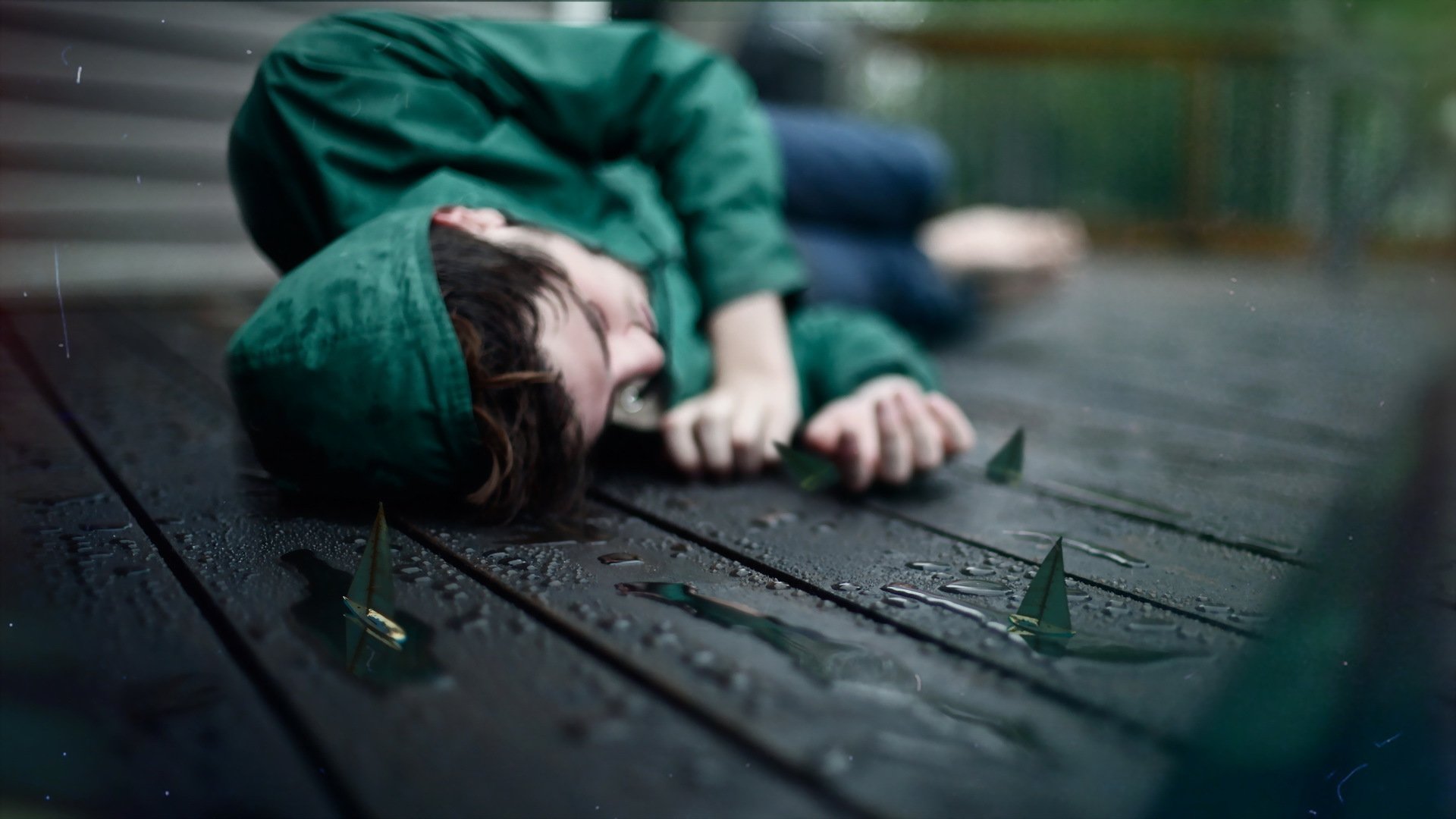 Hombre yace en el Suelo entre barcos mojados - fondos de Escritorio