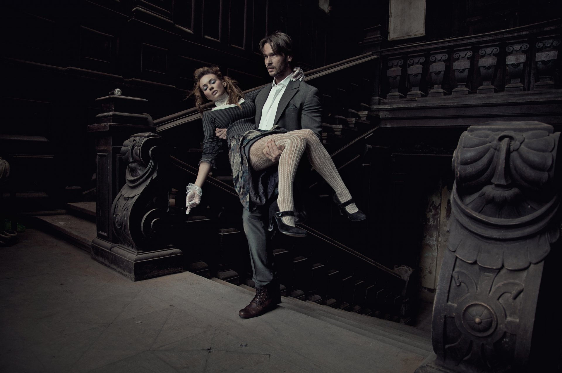 Etiquetas:chico, chica, escalera, pelirroja, traje, guantes