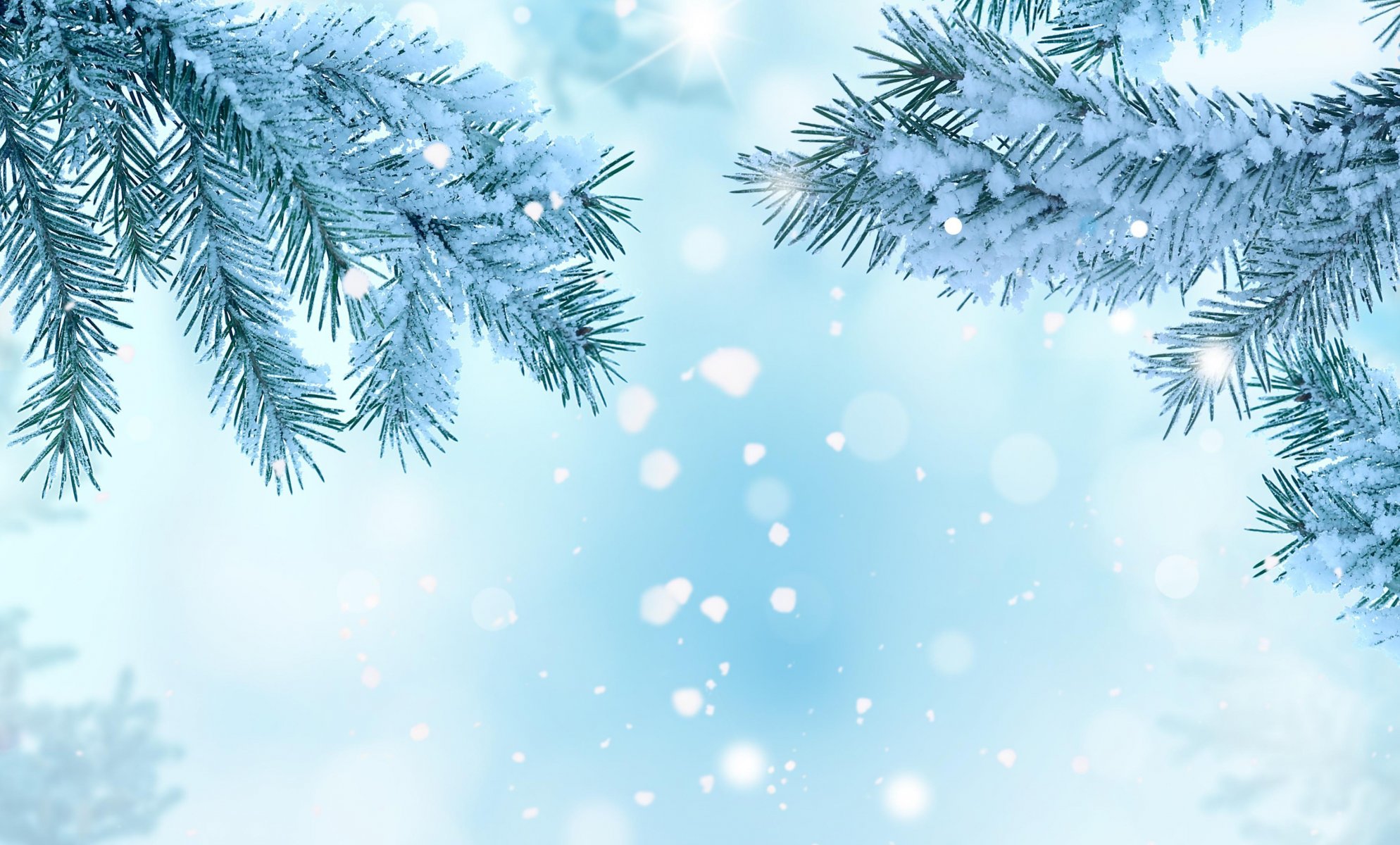 Naturaleza agujas de árbol de Navidad en invierno con nieve