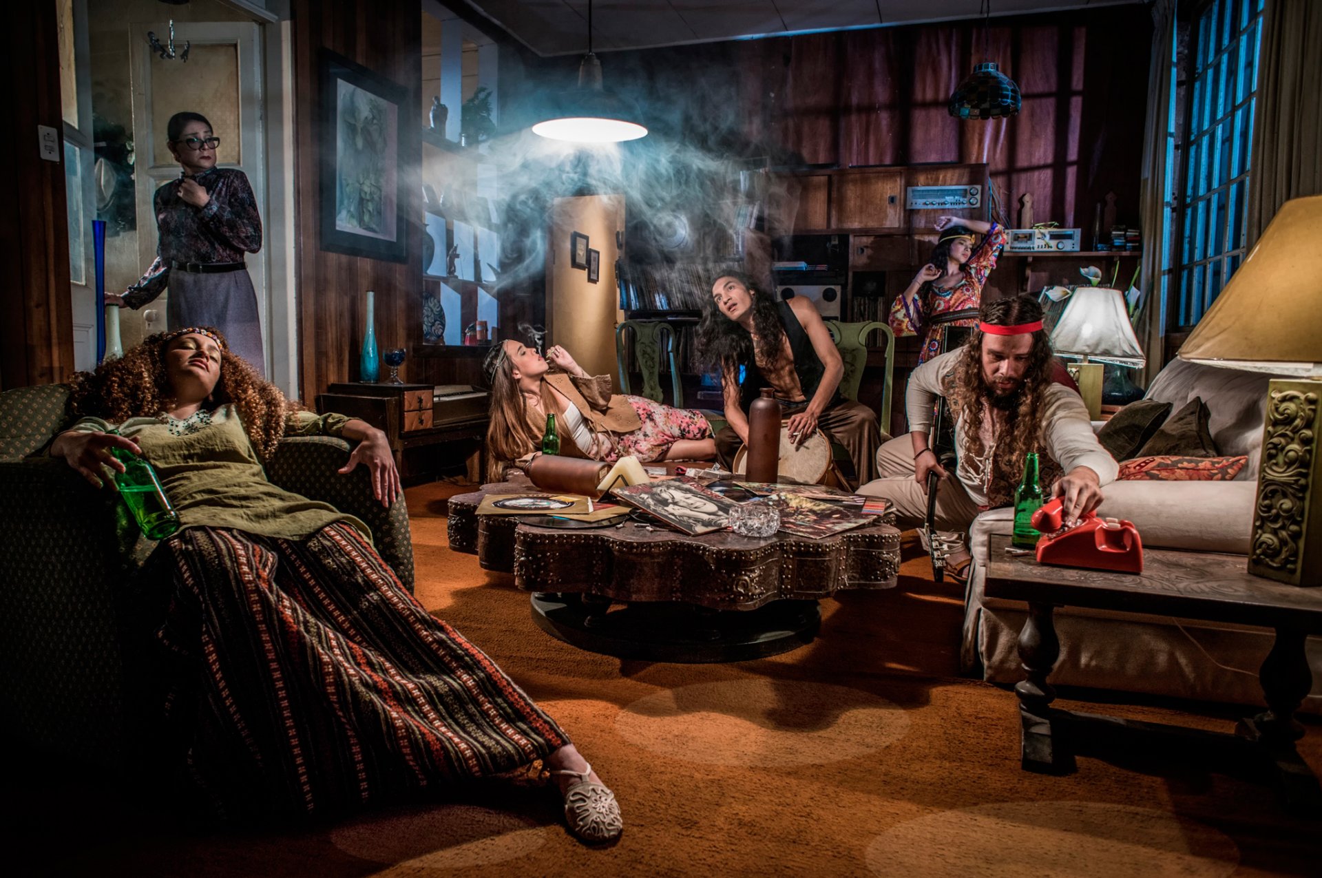 Tocadiscos con discos de vinilo se convierten en el instrumento musical de un DJ en una fiesta, amantes de la música en un Club nocturno "Retro-Vintage"