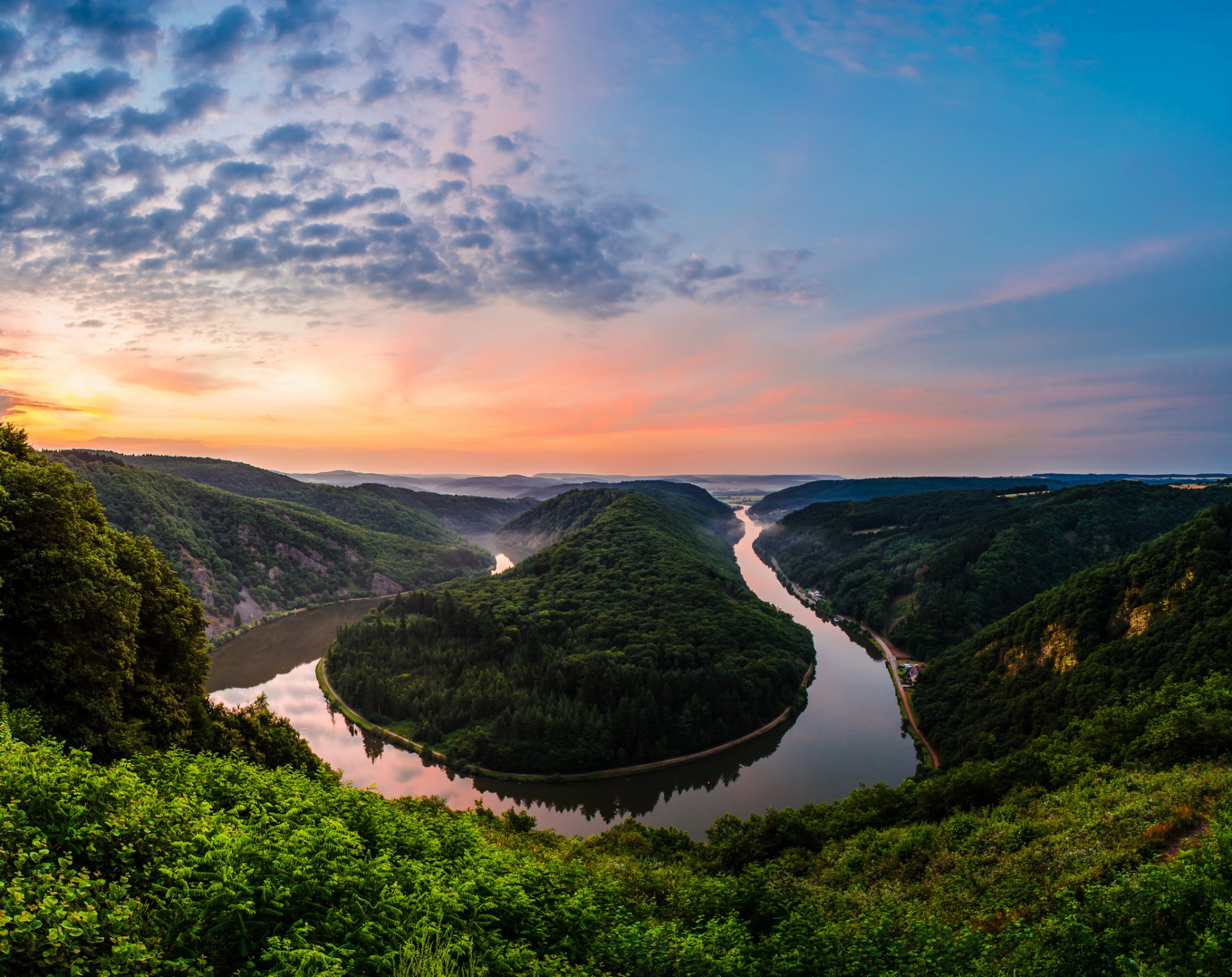 El paisaje del río y el bosque y la vista de la koroble que pasa