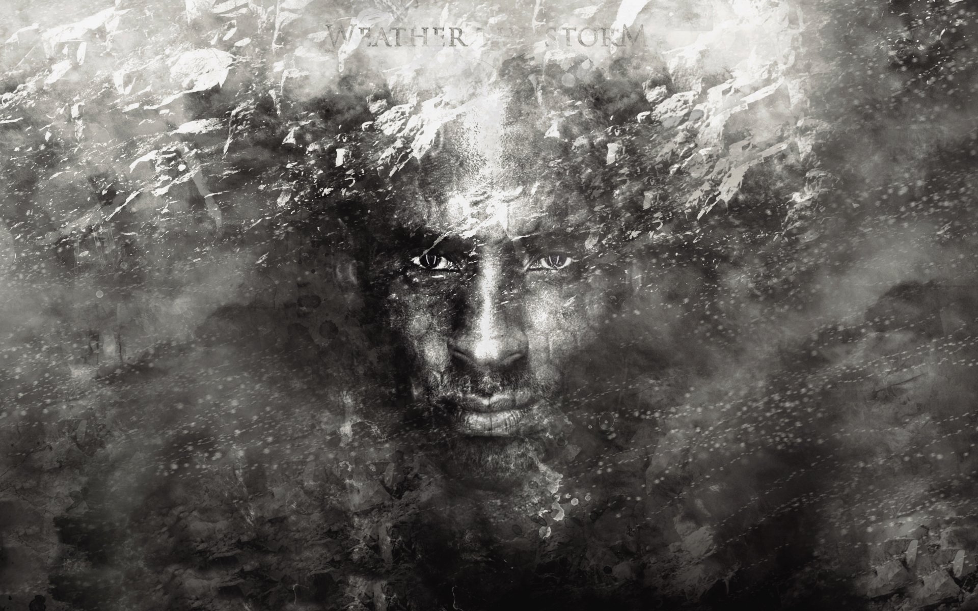 Imagen en blanco y negro con graffiti y nubes de tormentaImagen en blanco y negro con graffiti y nubes de tormenta