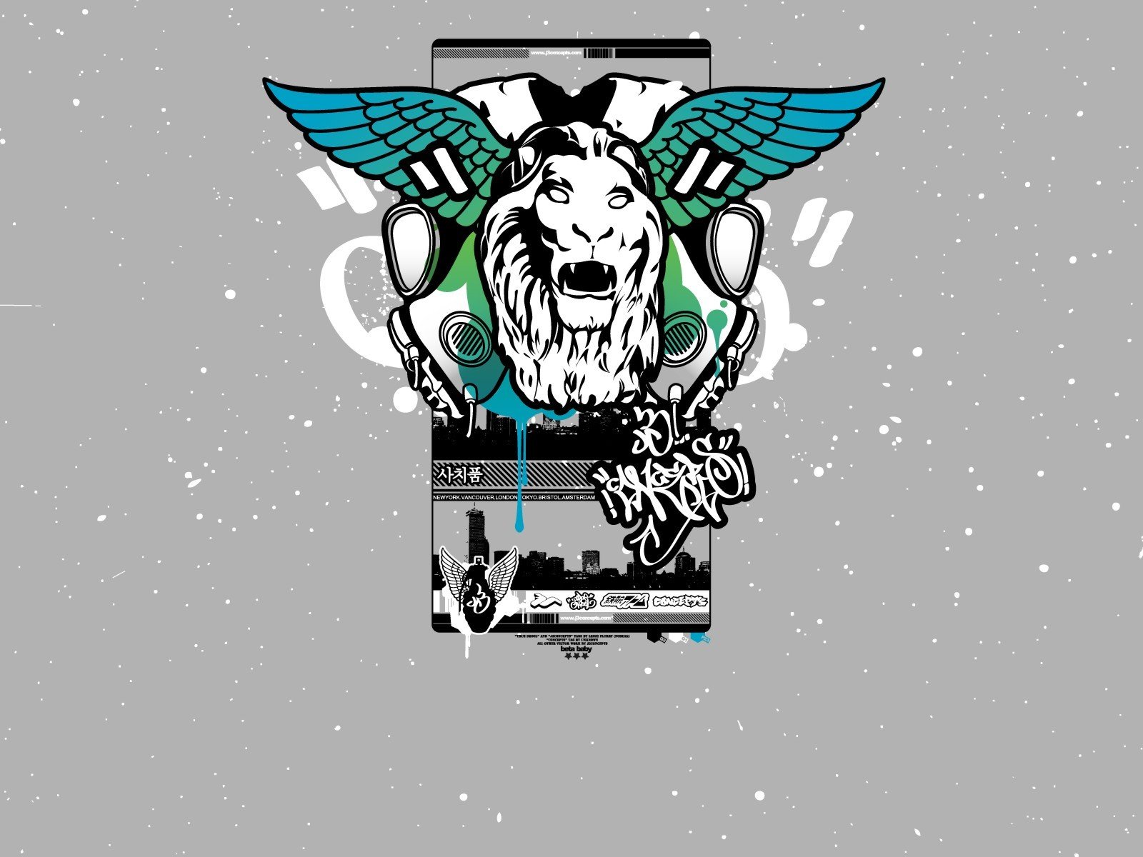 Cabeza de León con alas azules