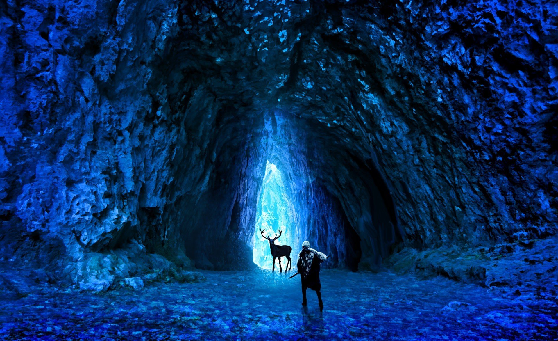 Una chica con un candelabro en la mano mira en un espejo mágico en una enorme salaUna chica con un candelabro en la mano Mira en un espejo mágico en una enorme sala