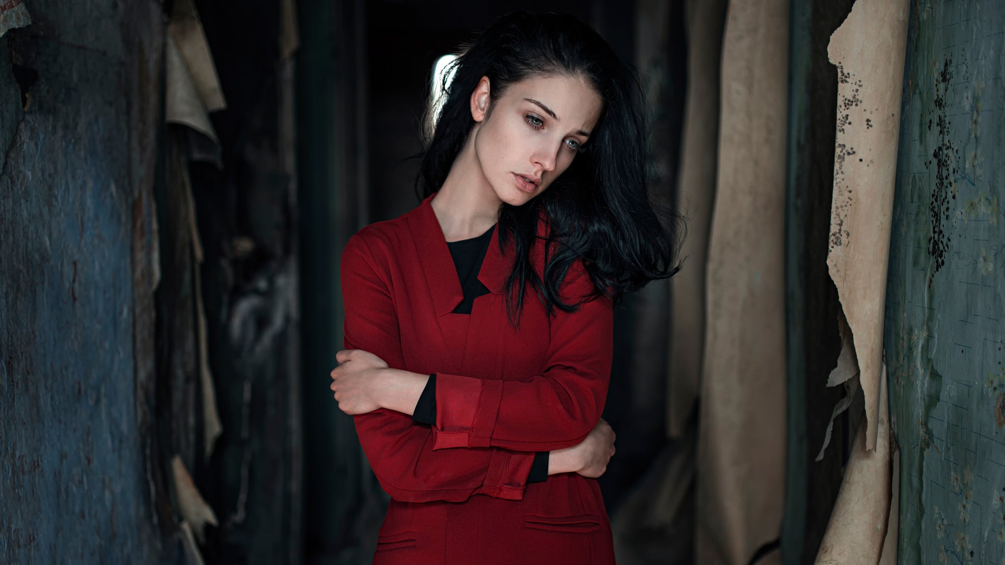 Chica de rojo con un cigarrillo en sus manos