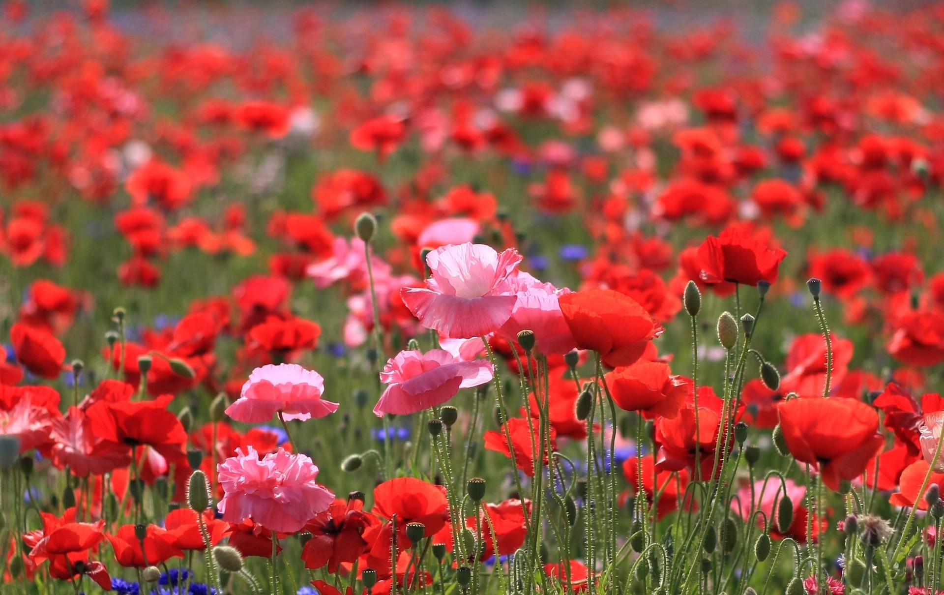 Amapolas en flor rojas y Rosadas
