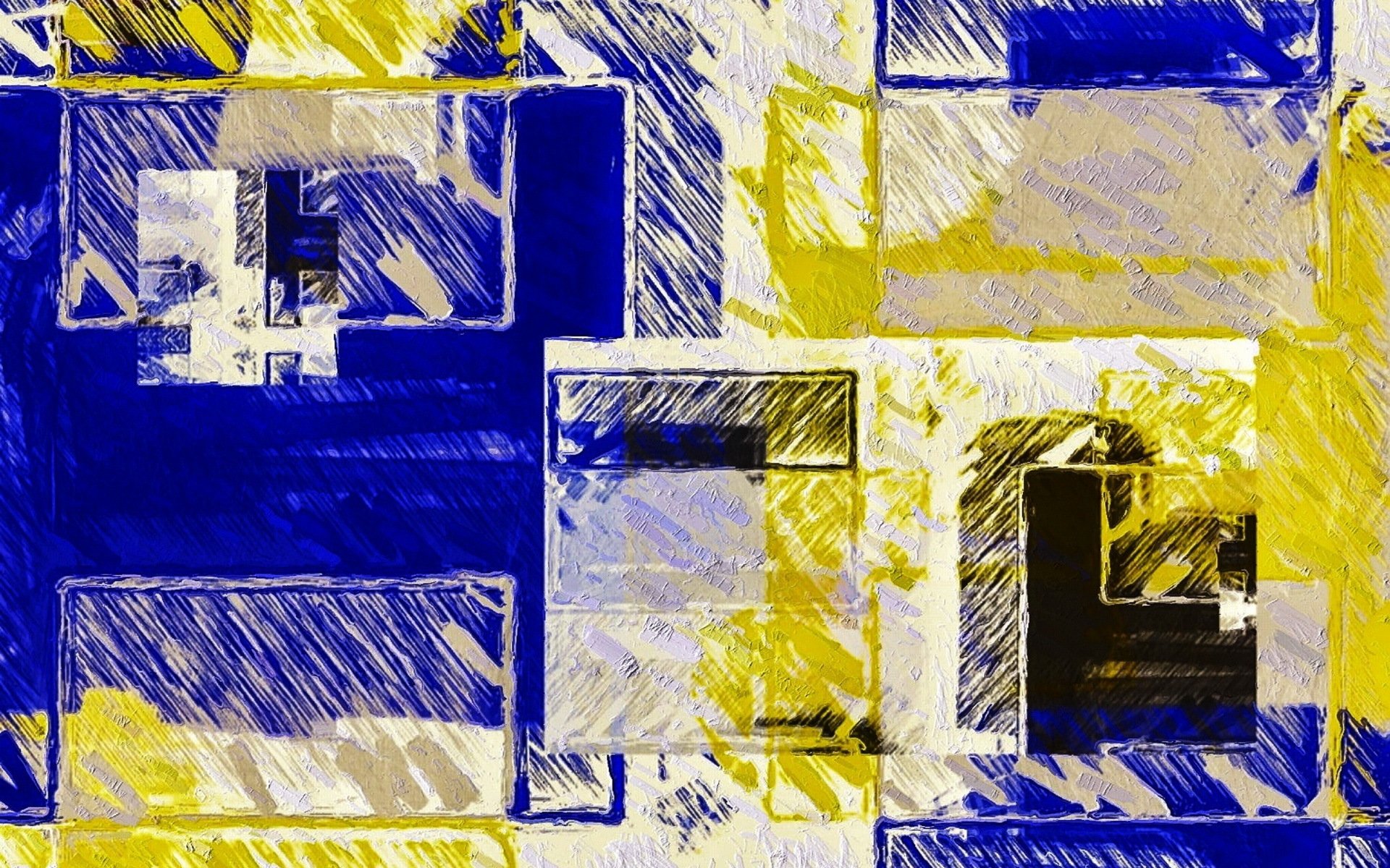 Abstracción multicolor de cuadrados de color amarillo-azulAbstracción multicolor de cuadrados de color amarillo-azul