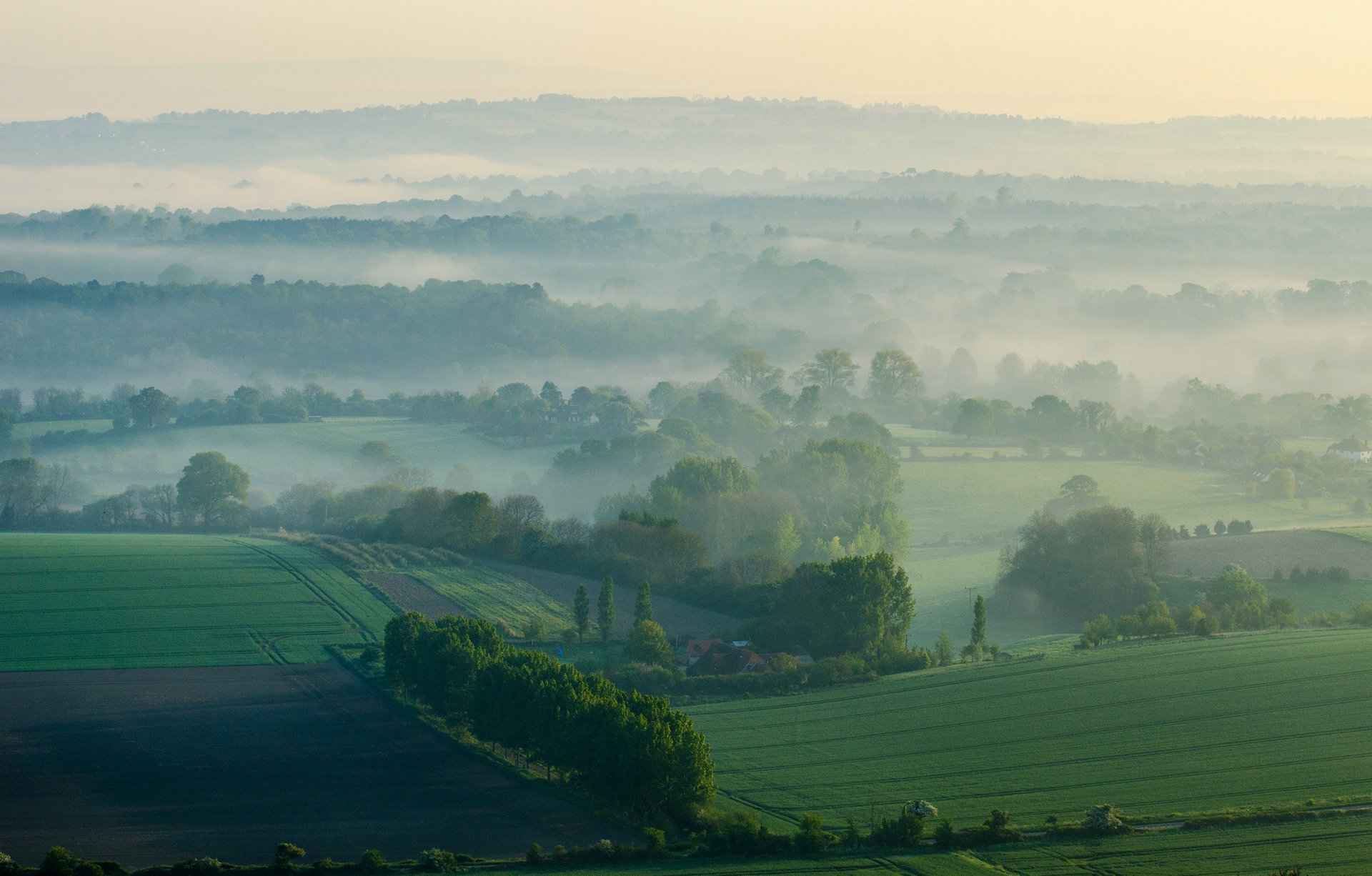 Niebla mañana colinas campo
