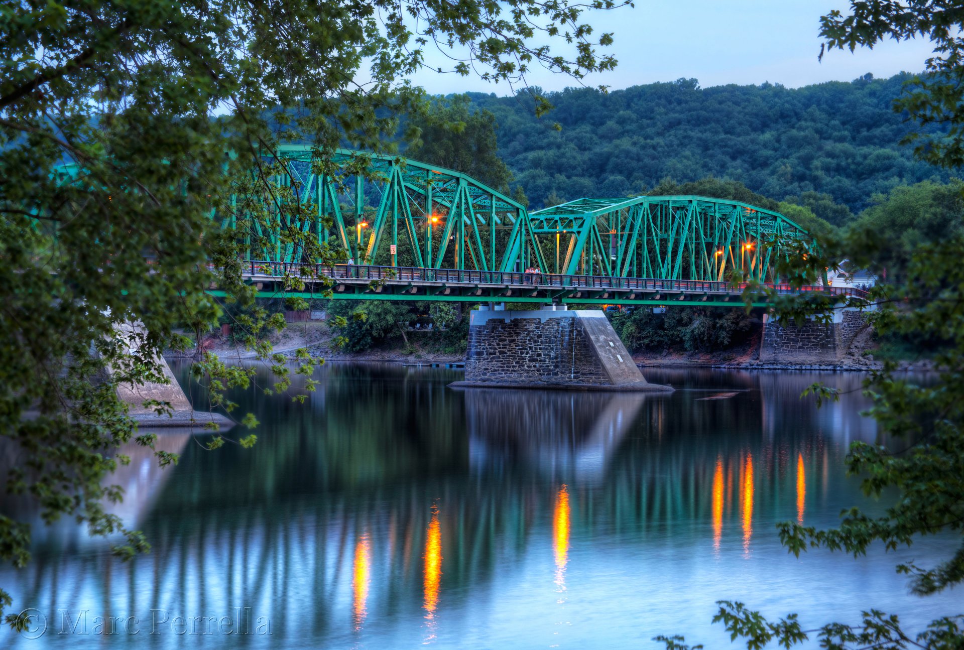 Foto en blanco y negro de un largo puente sobre aguas tranquilas cerca del bosqueFoto en blanco y negro de un largo puente sobre aguas tranquilas cerca del bosque